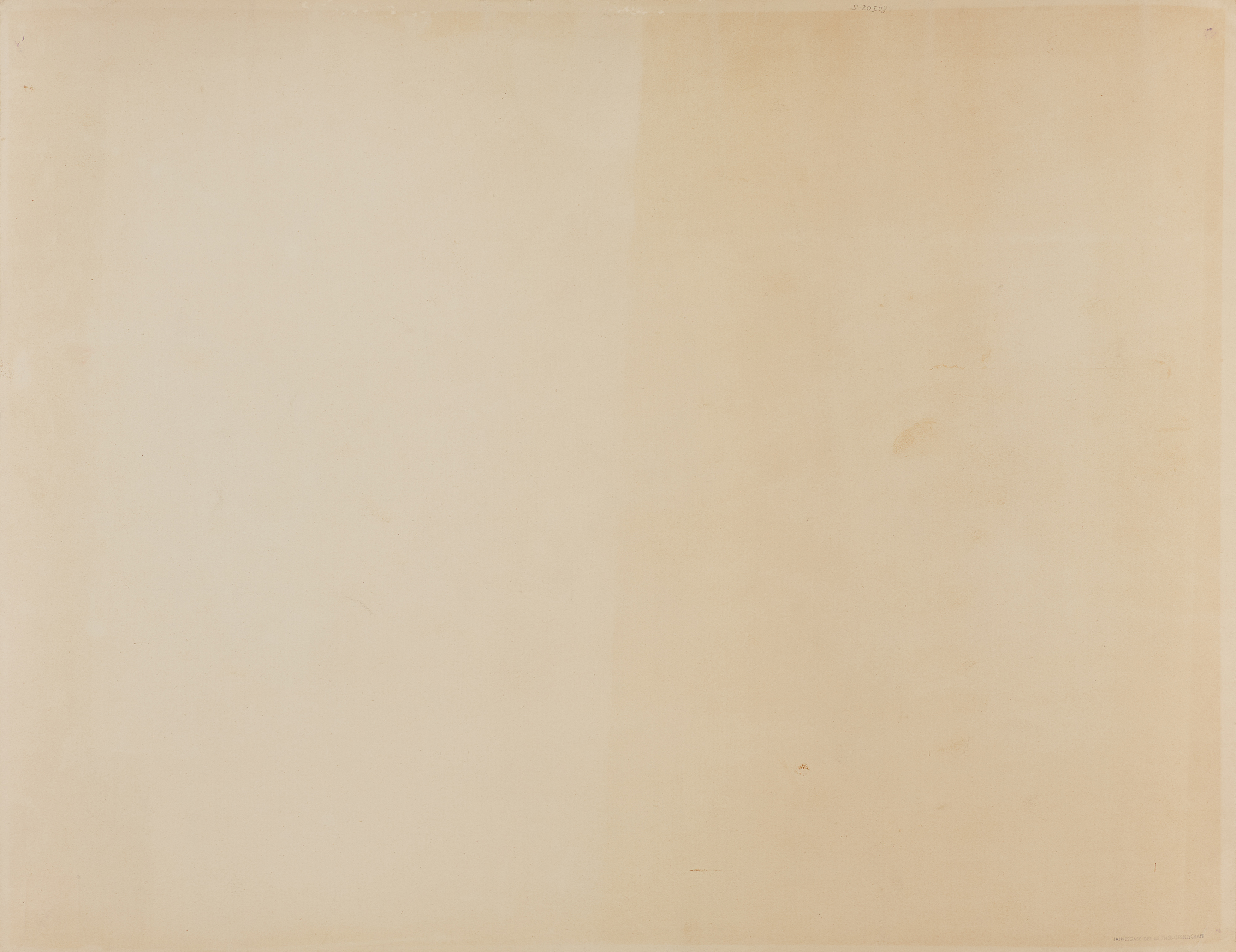 Blatt ehemals gerollt, daher leicht gebogen. Leicht gebräunt. Vereinzelt leichte Bestoßungen an den Kanten. Leichte Knickspuren in der Mitte durch die Länge des Blattes. Verso leicht und unregelmäßig gebräunt. Ansonsten in gutem Zustand.