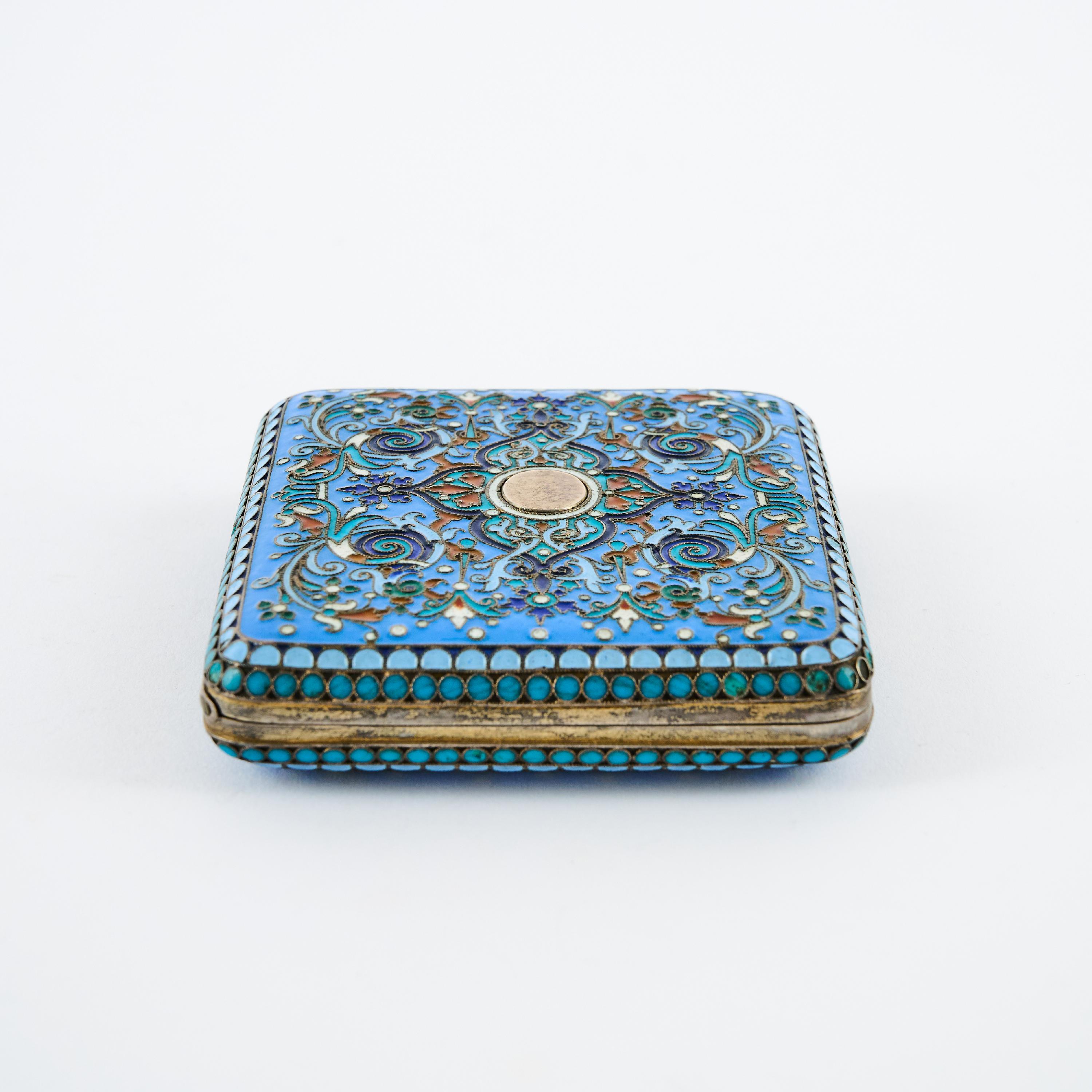 ZIGARETTENETUI MIT VORWIEGEND BLAUEM CLOISONNÉDEKOR.