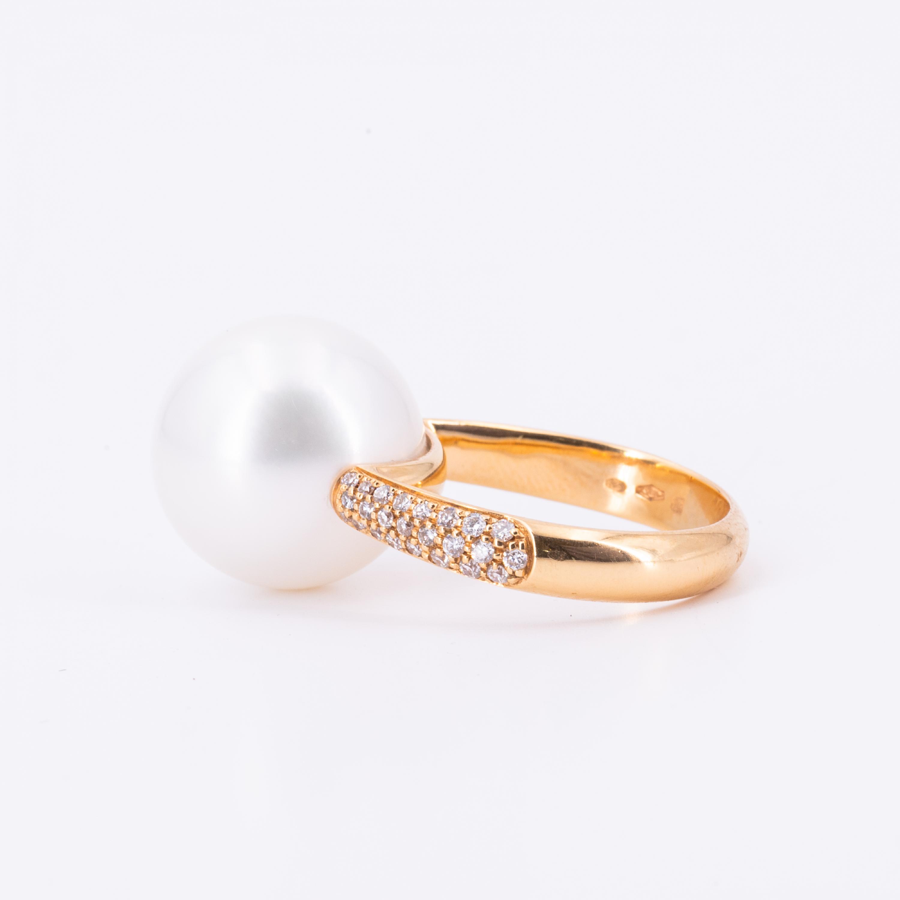 Org. Substanzen: 1 Südsee-Zuchtperle Ø ca. 14,2 mm, weiß-anthrazit-farben.