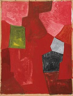 Composition Rouge. 1957. Gouache auf leichtem Velin. 64,8 x 50cm. Signiert unten Mitte: SERGE POLIAKOFF. Rahmen.