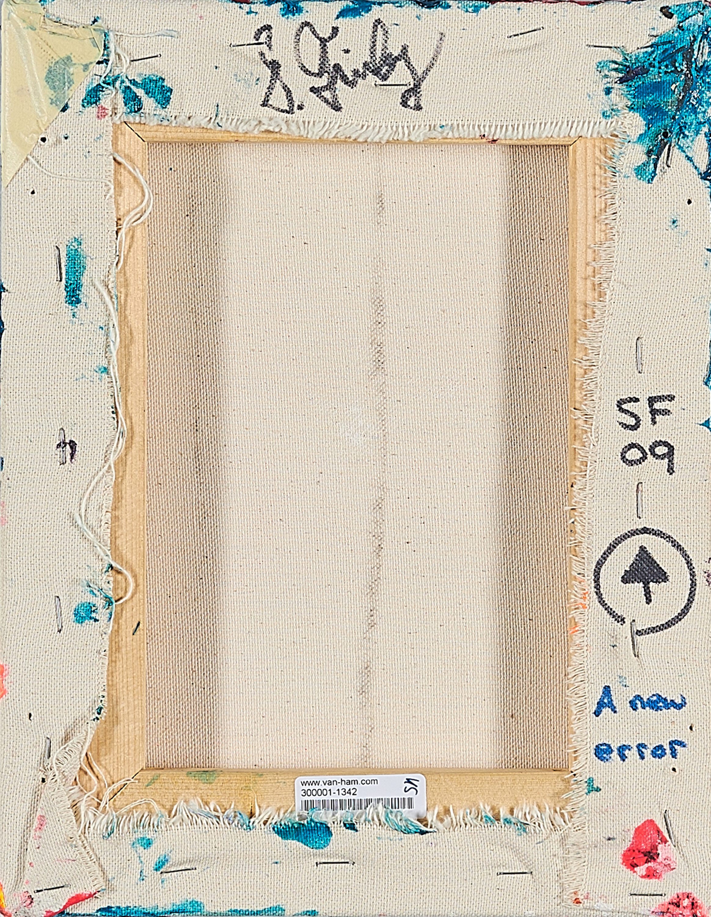 "A new error". 2009. Acryl auf Leinwand. 28 x 22cm. Signiert, monogrammiert, datiert und betitelt verso: S. Finley SF 09 A new error.