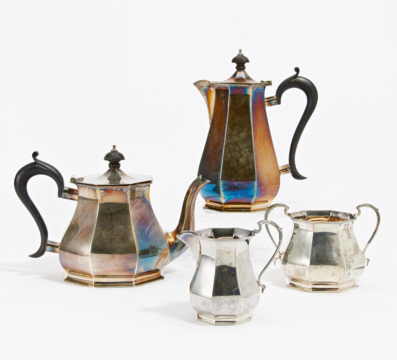 Beschreibung: Best. aus: Kaffee-, Teekanne, Zuckerschale, Milchkännchen.