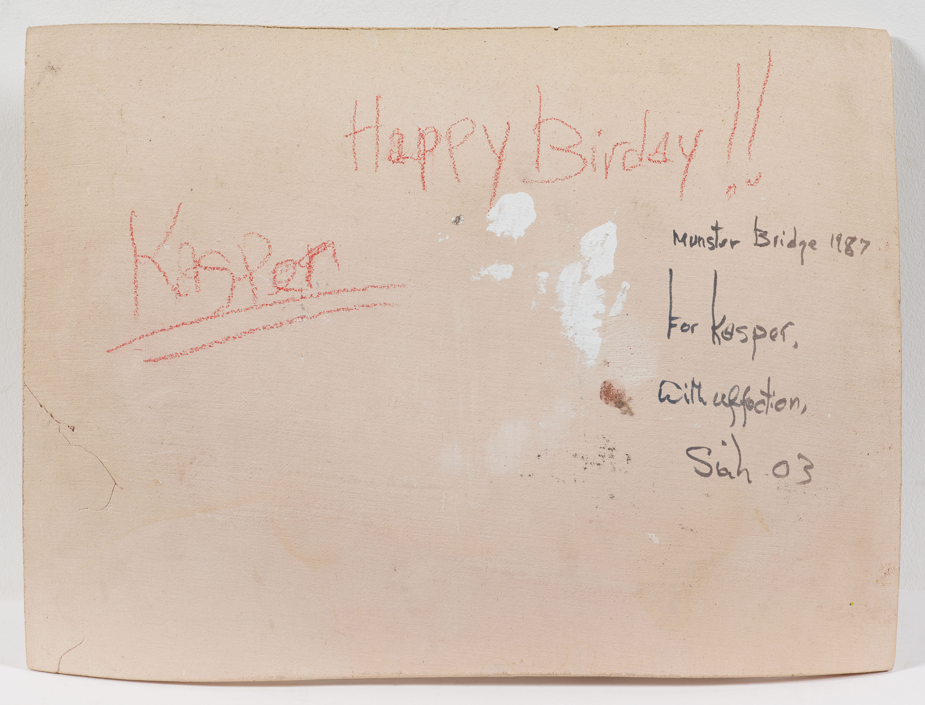 Bezeichnung: Gewidmet, betitelt, nochmals gewidmet, signiert und datiert verso: Happy Birday!! Kasper (unterstrichen) Munster Bridge 1987 For Kasper. With affection, Siah 03.