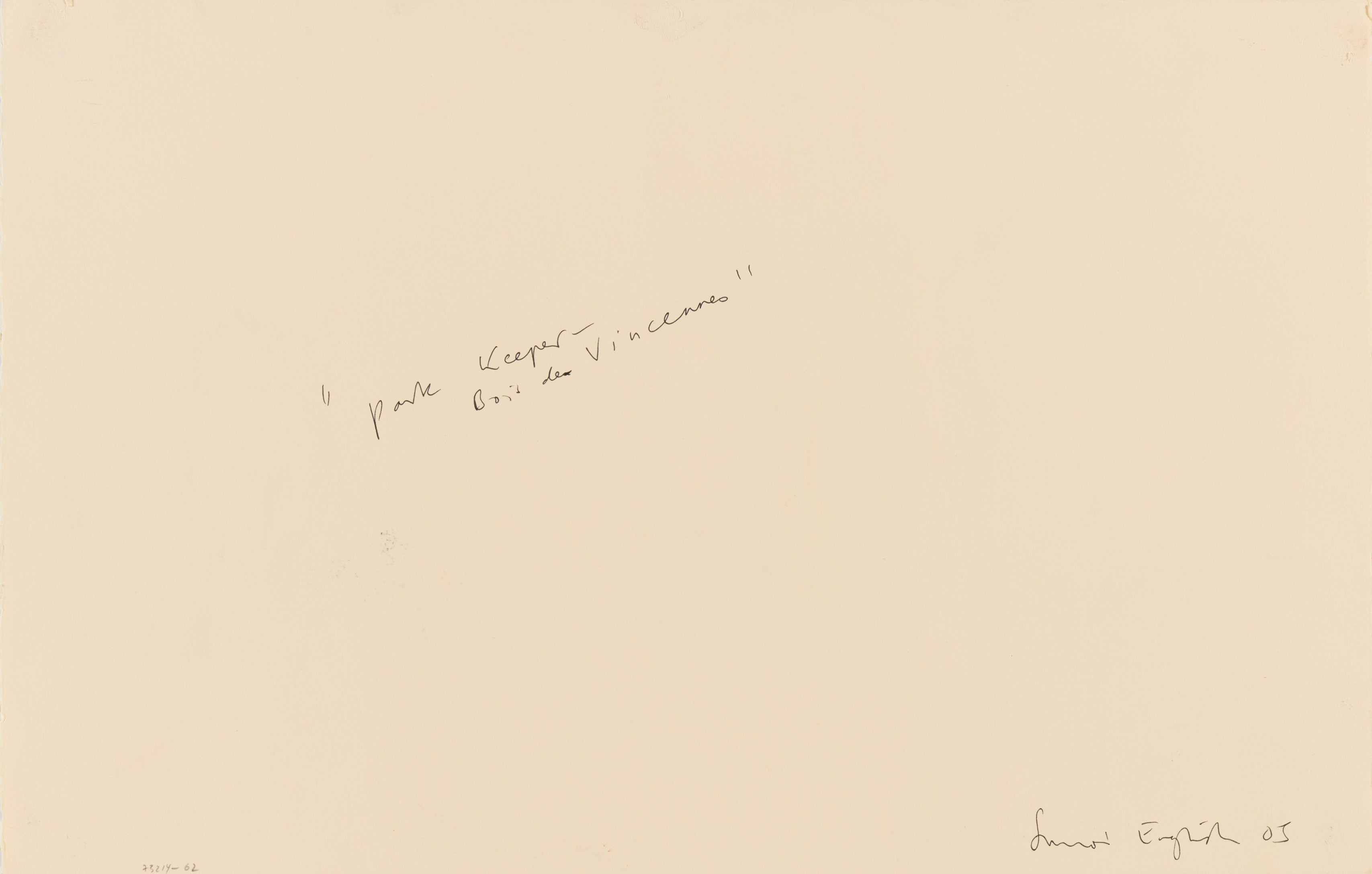 Bezeichnung: Betitelt, signiert und datiert verso: "Park Keeper Bois de Vincennes" Simon English 03.