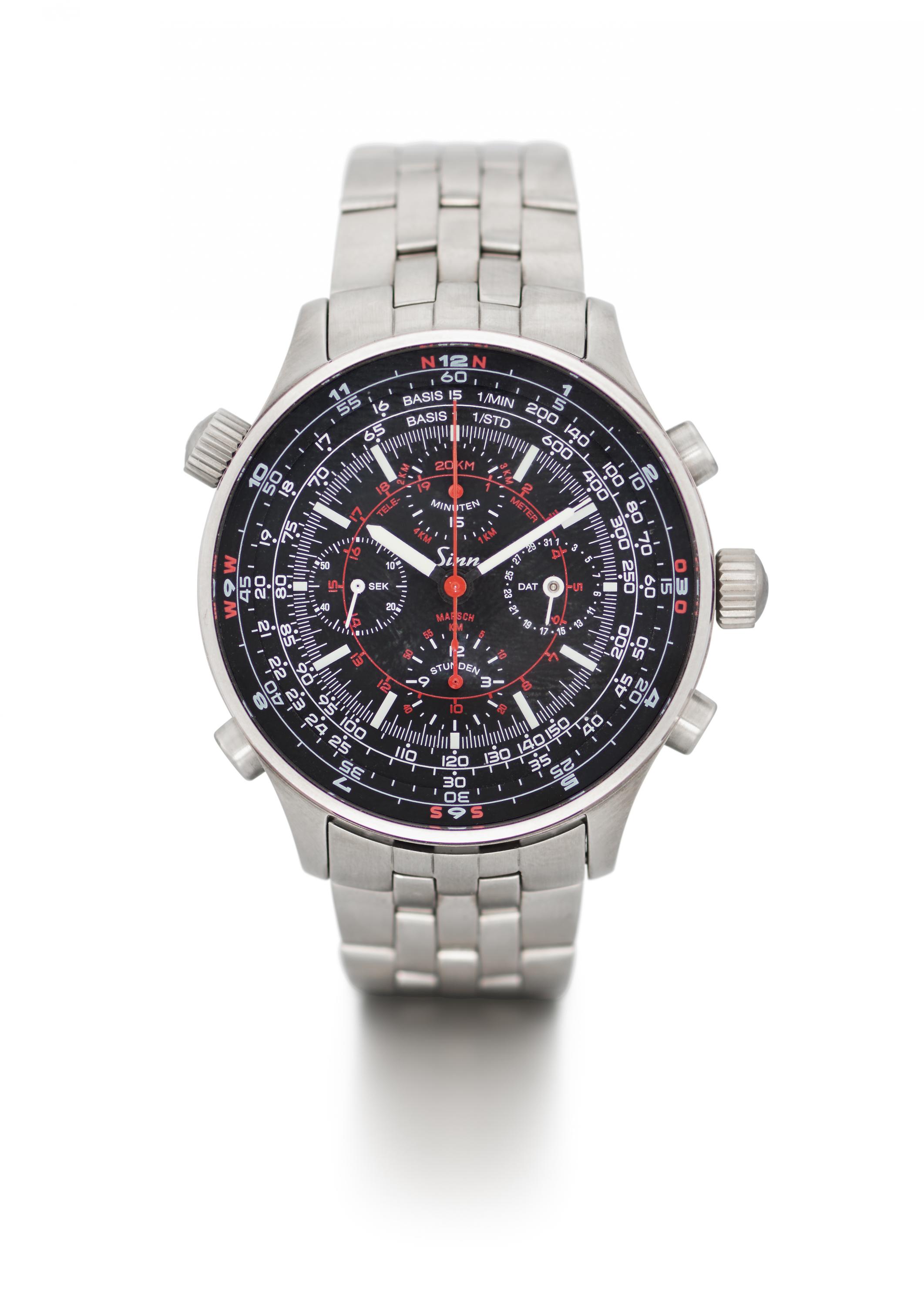 Gehäuse/Armband: Stahl, Gliederarmband mit Doppelfaltschließe, Zffbl. schwarz, Zeiger weiß, Indizes weiß, Leuchtmasse.