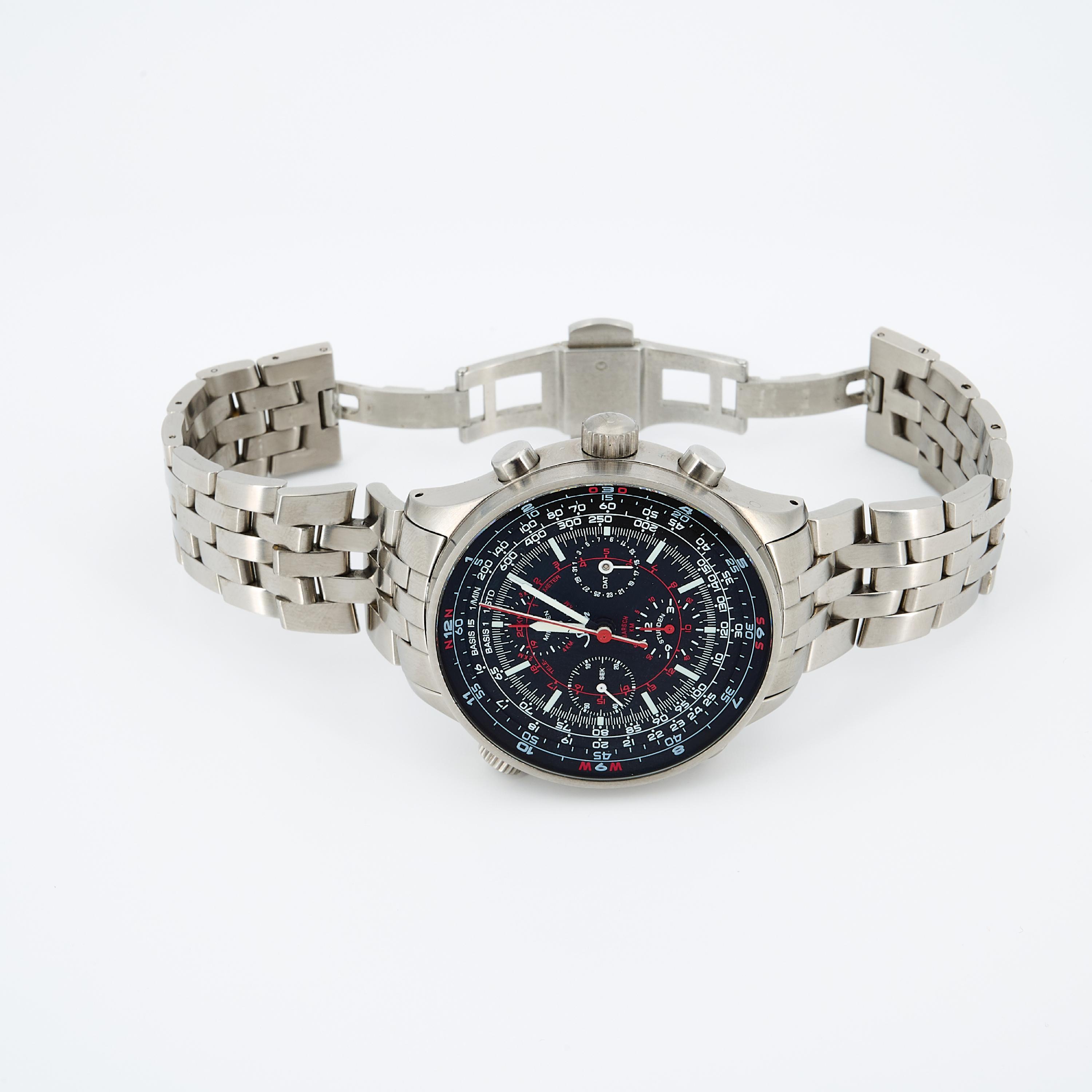 Beschreibung: 3-Zeiger-Chronograph, mit Datumsanzeige bei "3" Uhr, 12-Stundenanzeige bei "6" Uhr,