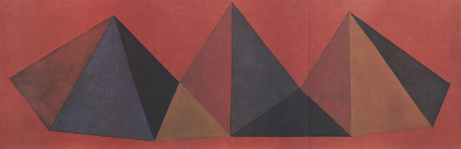 Piramidi. Serie von 10 Lithografie. 1986. Jeweils: Farblithografie auf Bütten, 2-afch gefaltet. 22 x 68cm Marco Noire Editore, Turin, (Hrsg.).