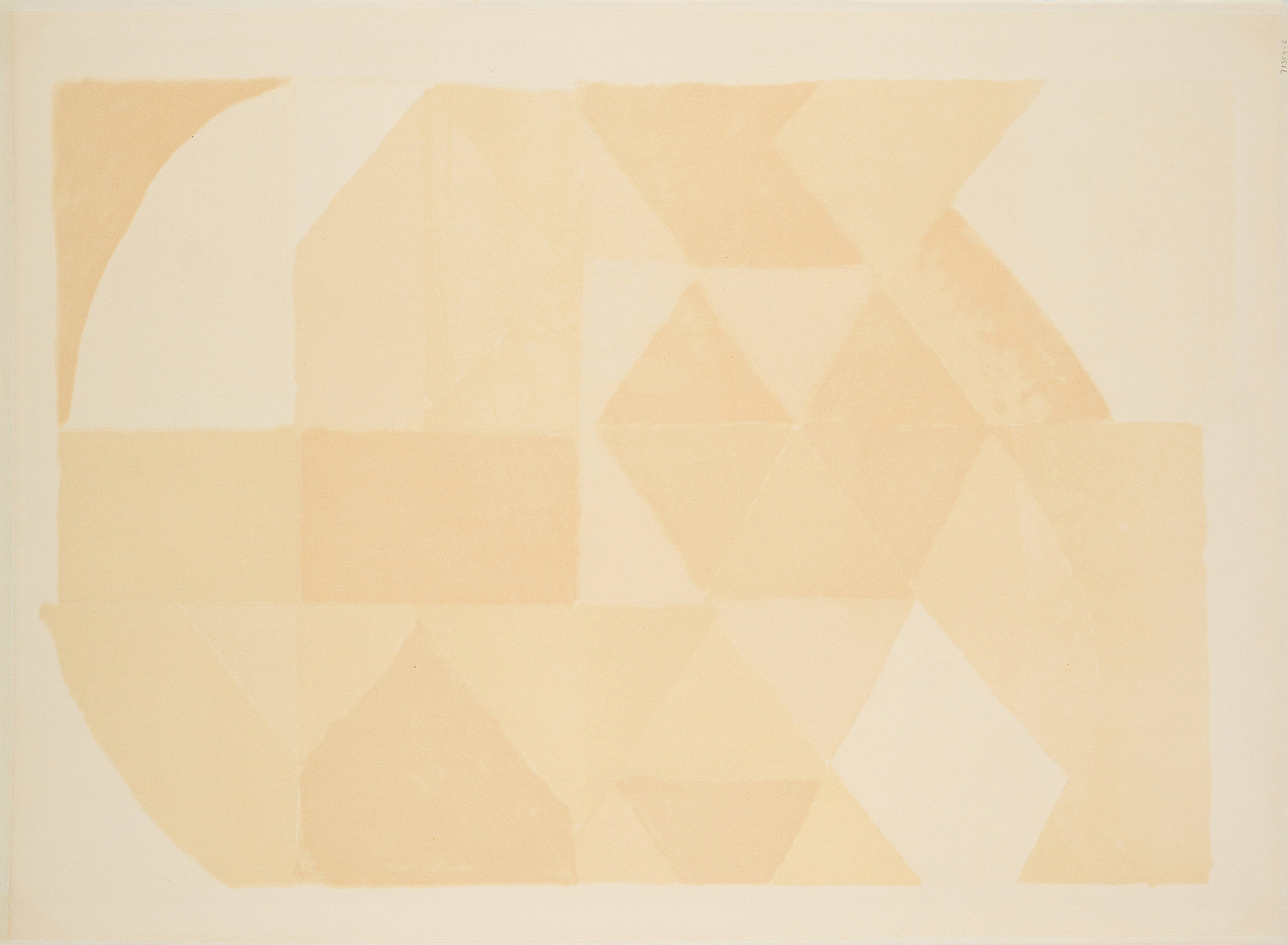 Blatt unter ehemaligem Passepartoutausschnitt leicht gebräunt. Blattecken leicht Verfärbt durch ehemalige Eckenschoner. Vereinzelt minimale Griffspuren an den Blatträndern. Minimale strichförmige Bereibungen im mittleren unteren und rechten oberen schwarzen Farbfeld. Ansonsten befindet sich das Werk in einem sehr guten Zustand.