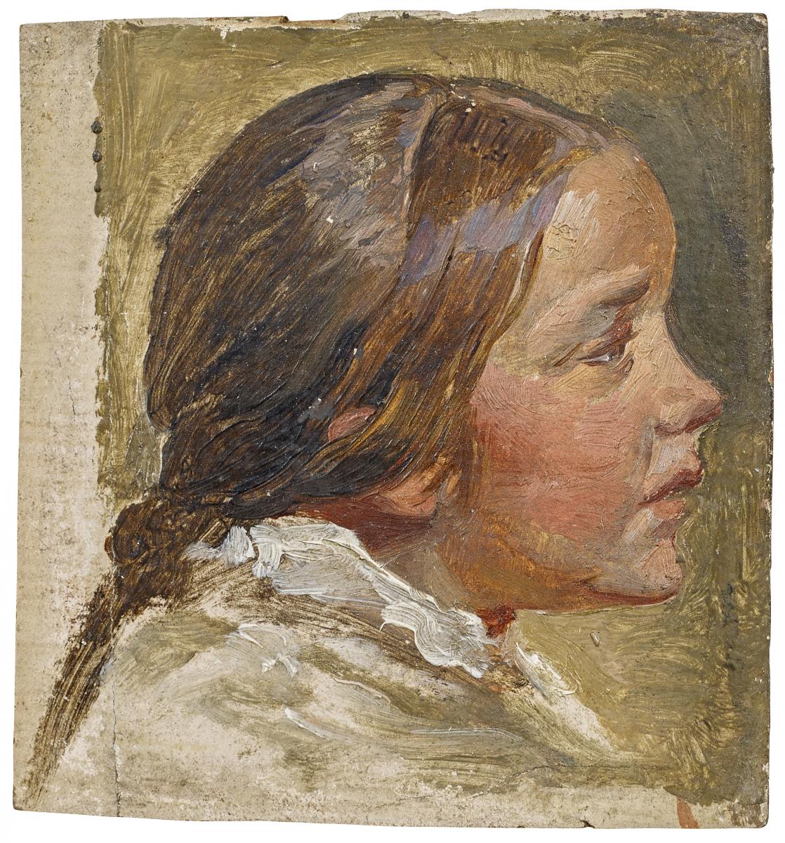 Kopfstudie eines Mädchens. Öl auf Papier. Auf Karton gelegt. 7,5 x 7cm. Rahmen.