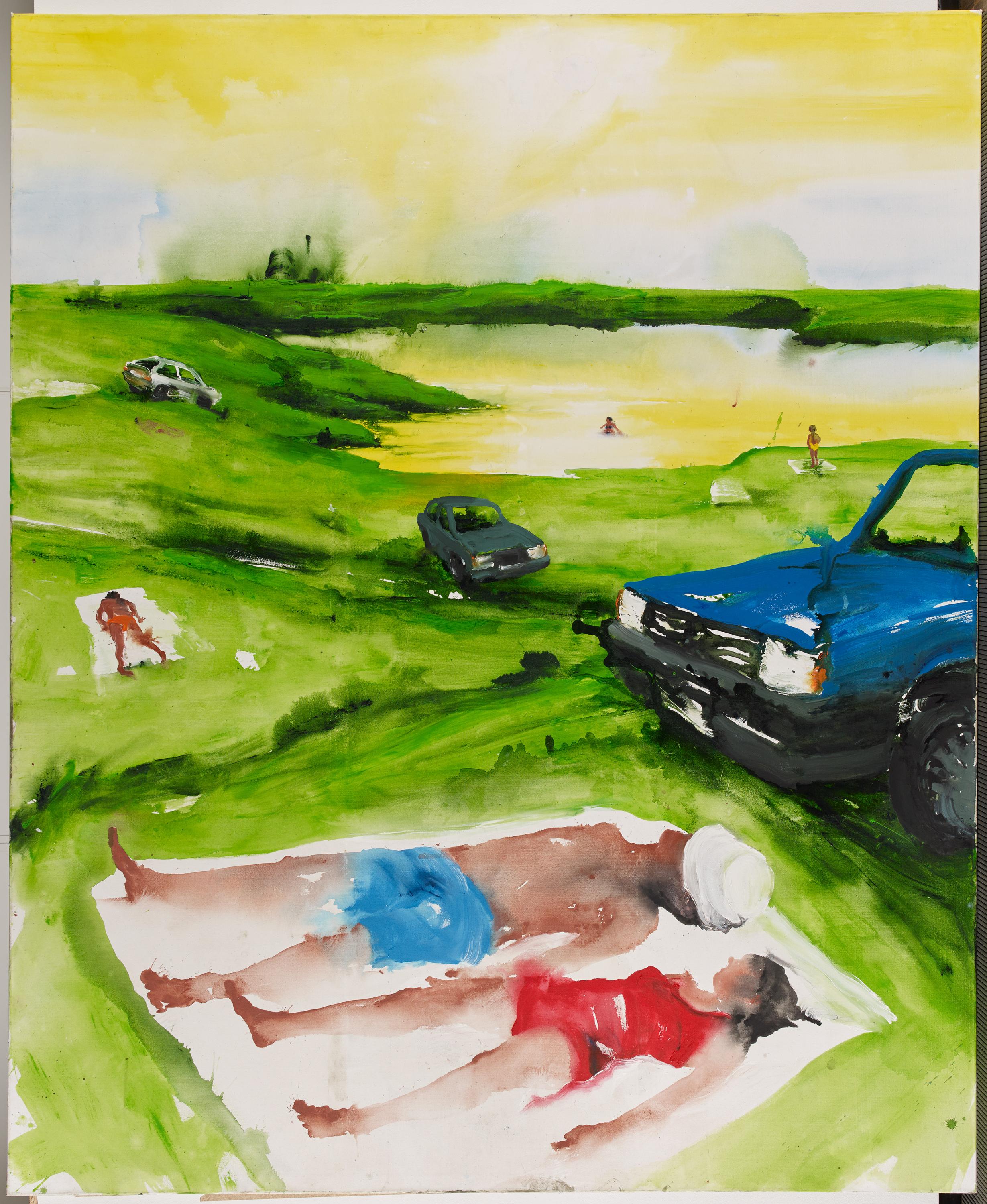 Bezeichnung: Signiert, betitelt und datiert verso mittig links: Sven Kroner o.T. 99. Bezeichnet auf Keilrahmen mittig: Baggersee.