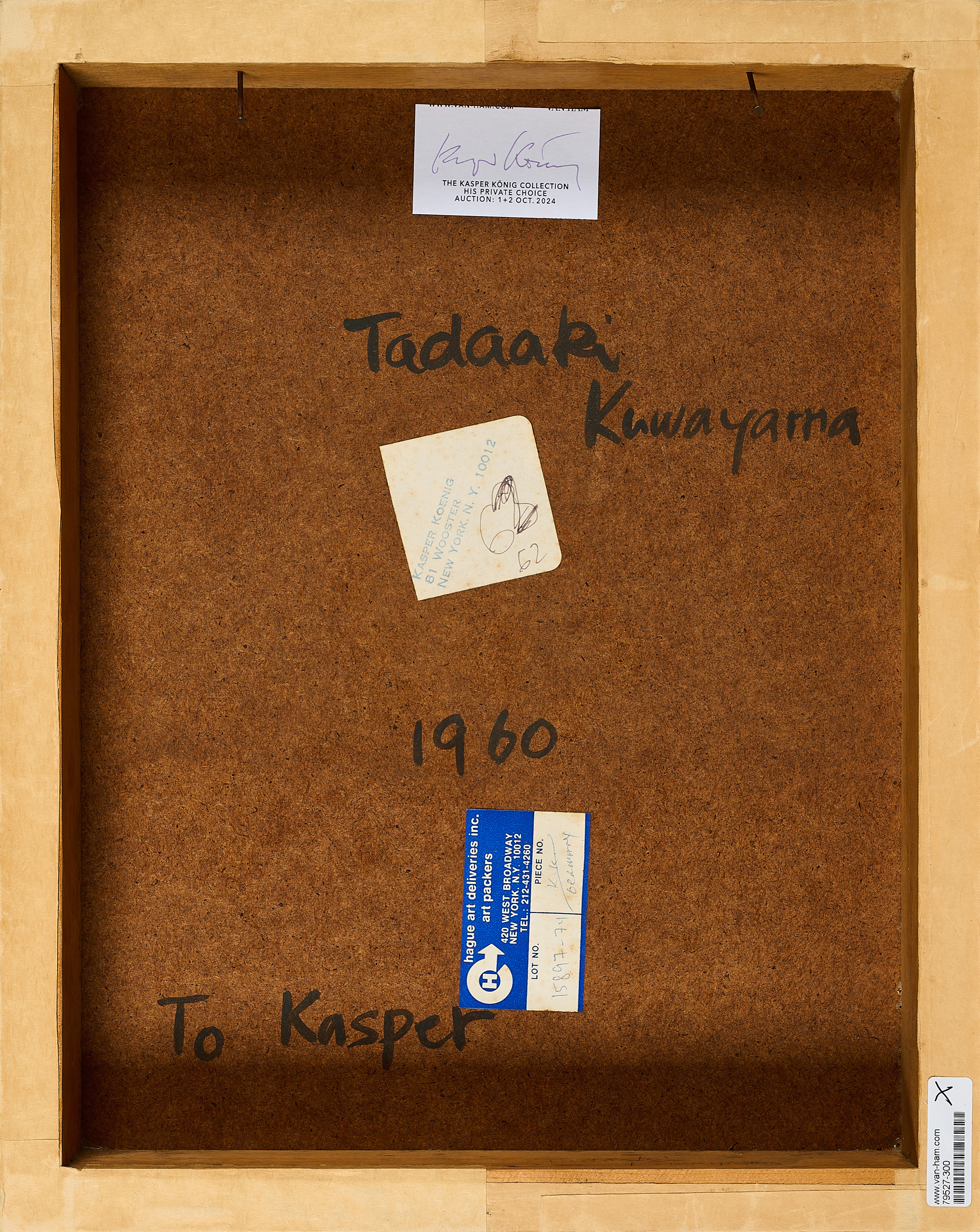 Bezeichnung: Signiert, datiert und an Kasper König gewidmet verso: Tadaaki Kuwayama 1960 To Kasper.