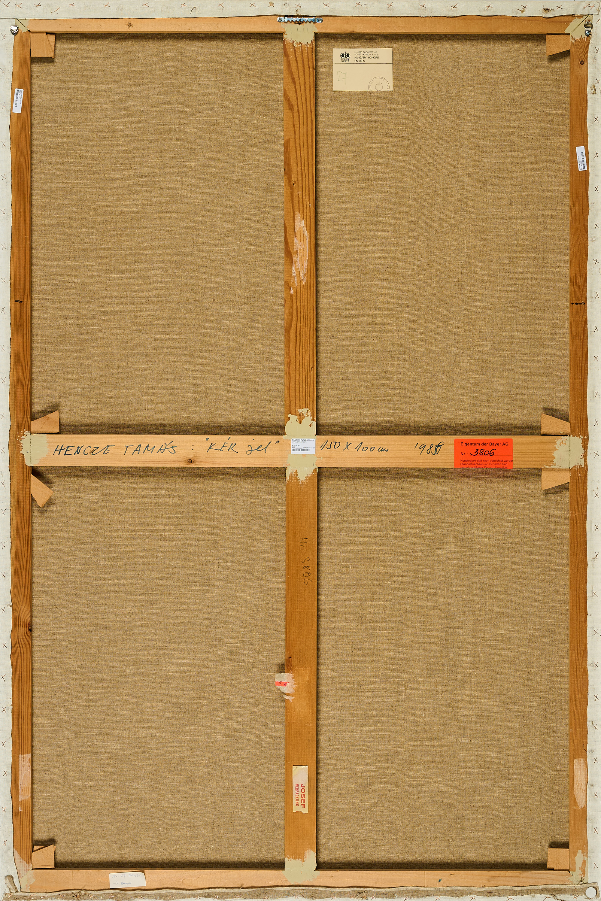Bezeichnung: Signiert, betitelt, bezeichnet und datiert verso auf dem Keilrahmen: HENCZE TAMÁS: "KÉK JEL" 150 x 100cm 1986.