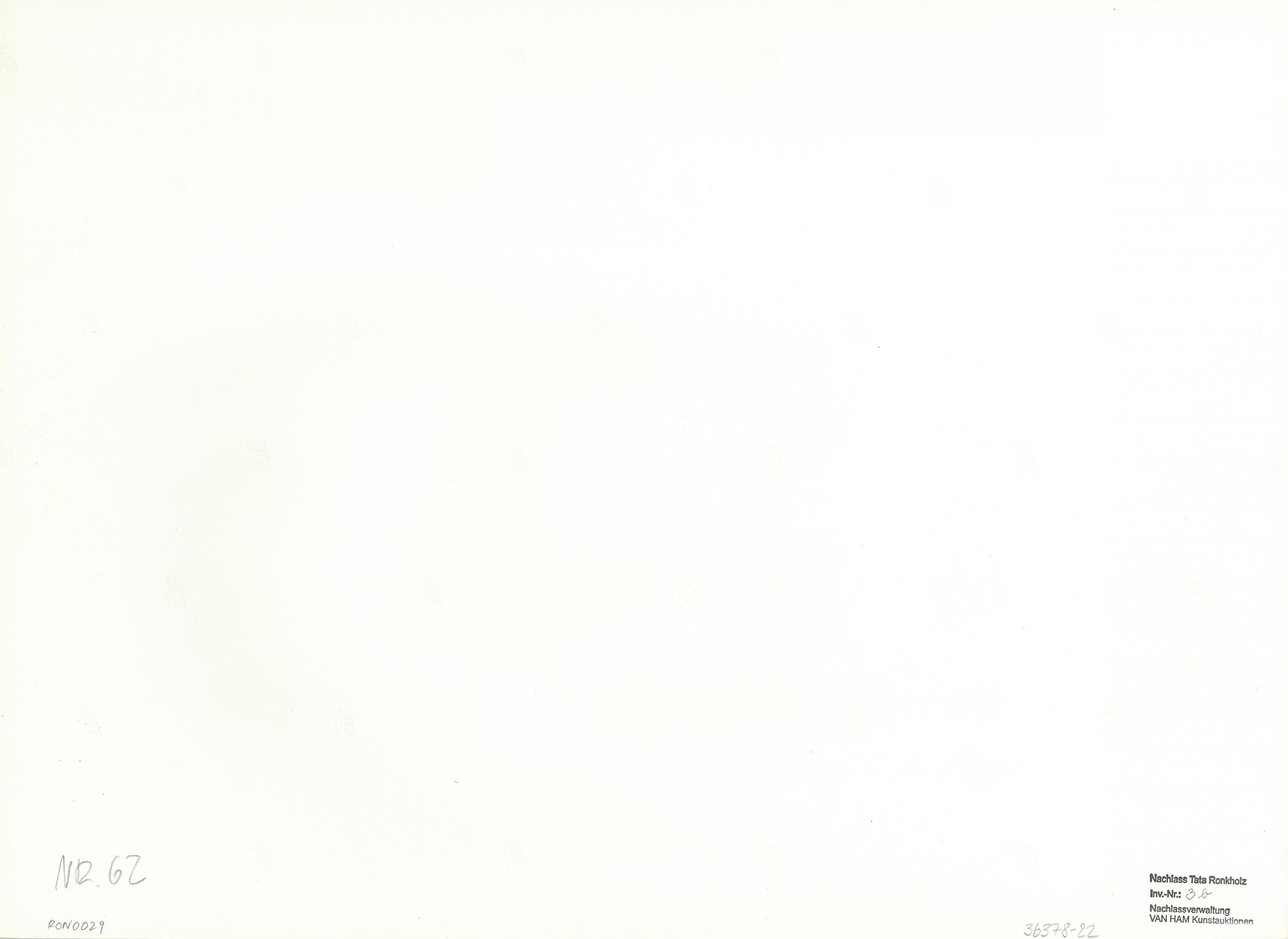 Auf der Rückseite befindet sich unten links die handschriftliche Nummerierung der Künstlerin: Nr. 62. Außerdem Nachlassstempel VAN HAM Art Estate verso unten rechts: Inv.-Nr. 3b.