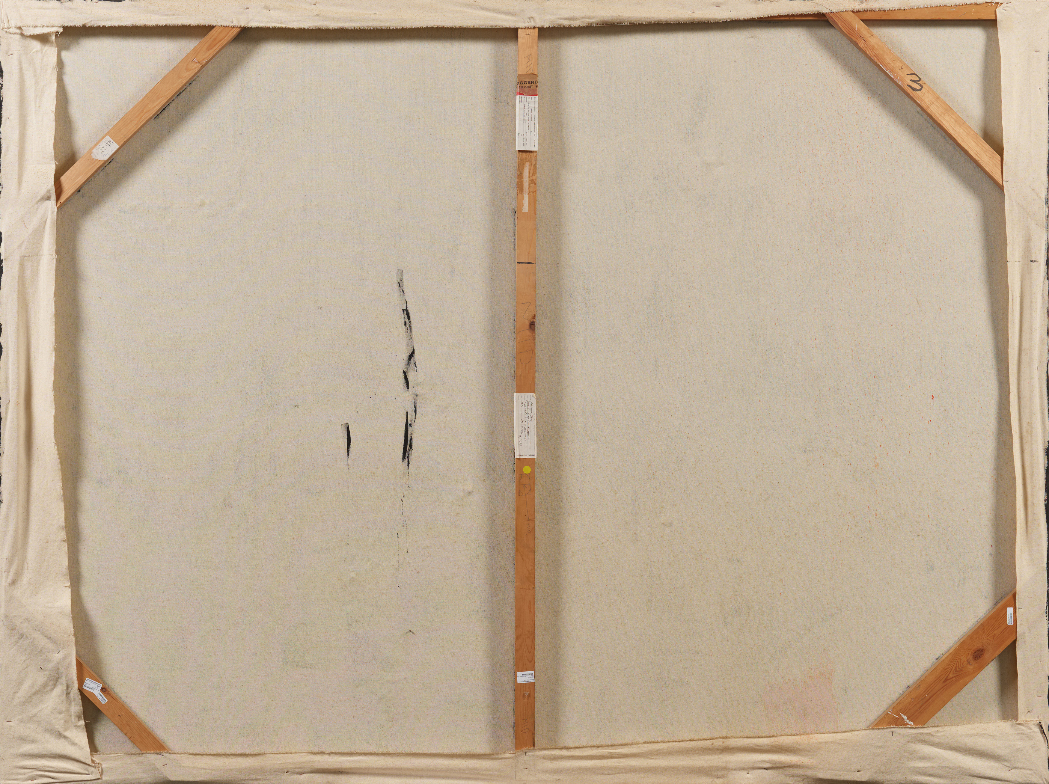 Geringe Leiwandspannung. Vereinzelt minimale Bereibungen der Kanten. Minimale Staubablagerungen. Stockflecken verso. Ansonsten guter Zustand.