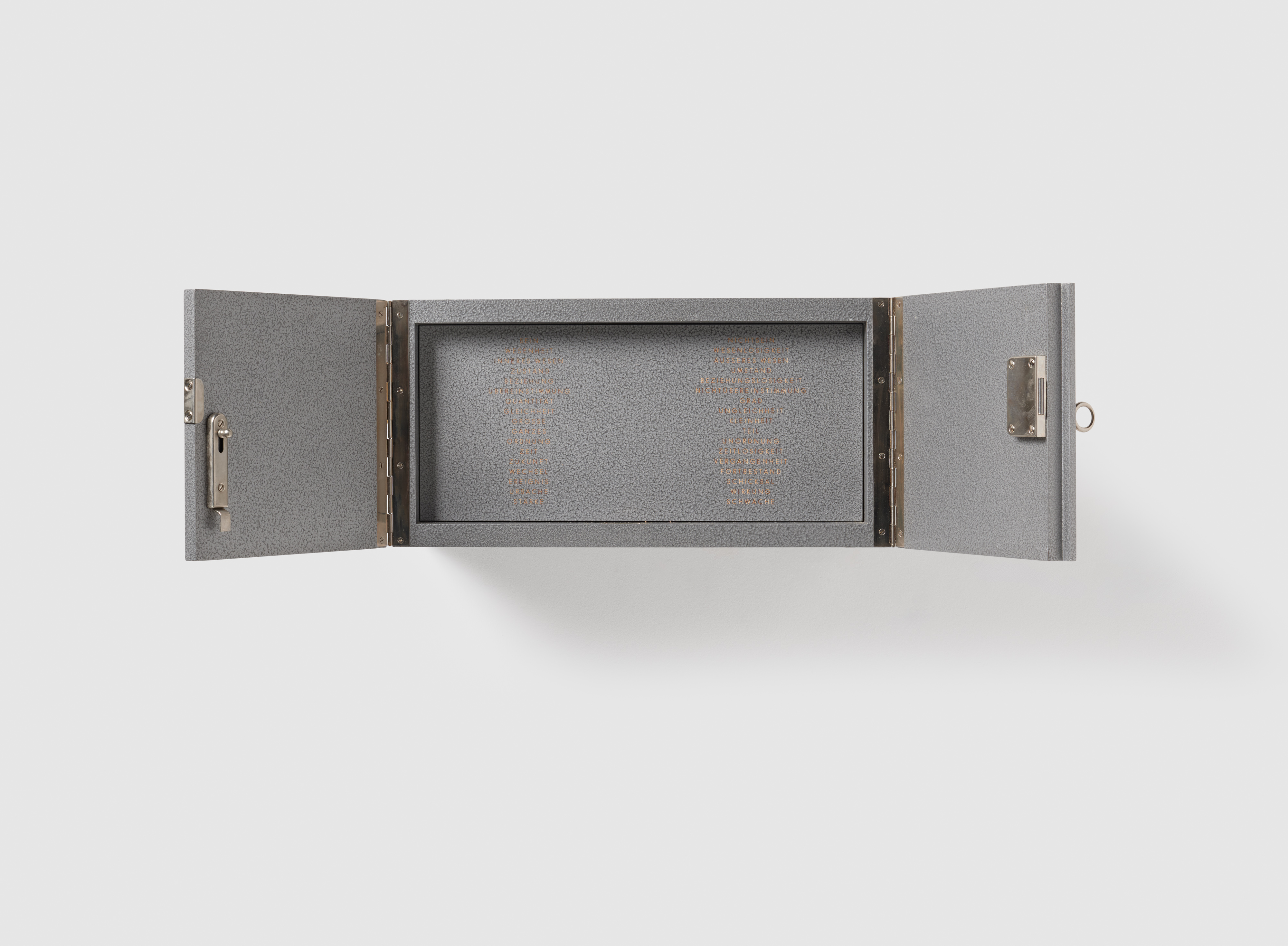 Technik: Holzkiste mit Scharnier und Schloss, geprägt und farbig beschichtet.
