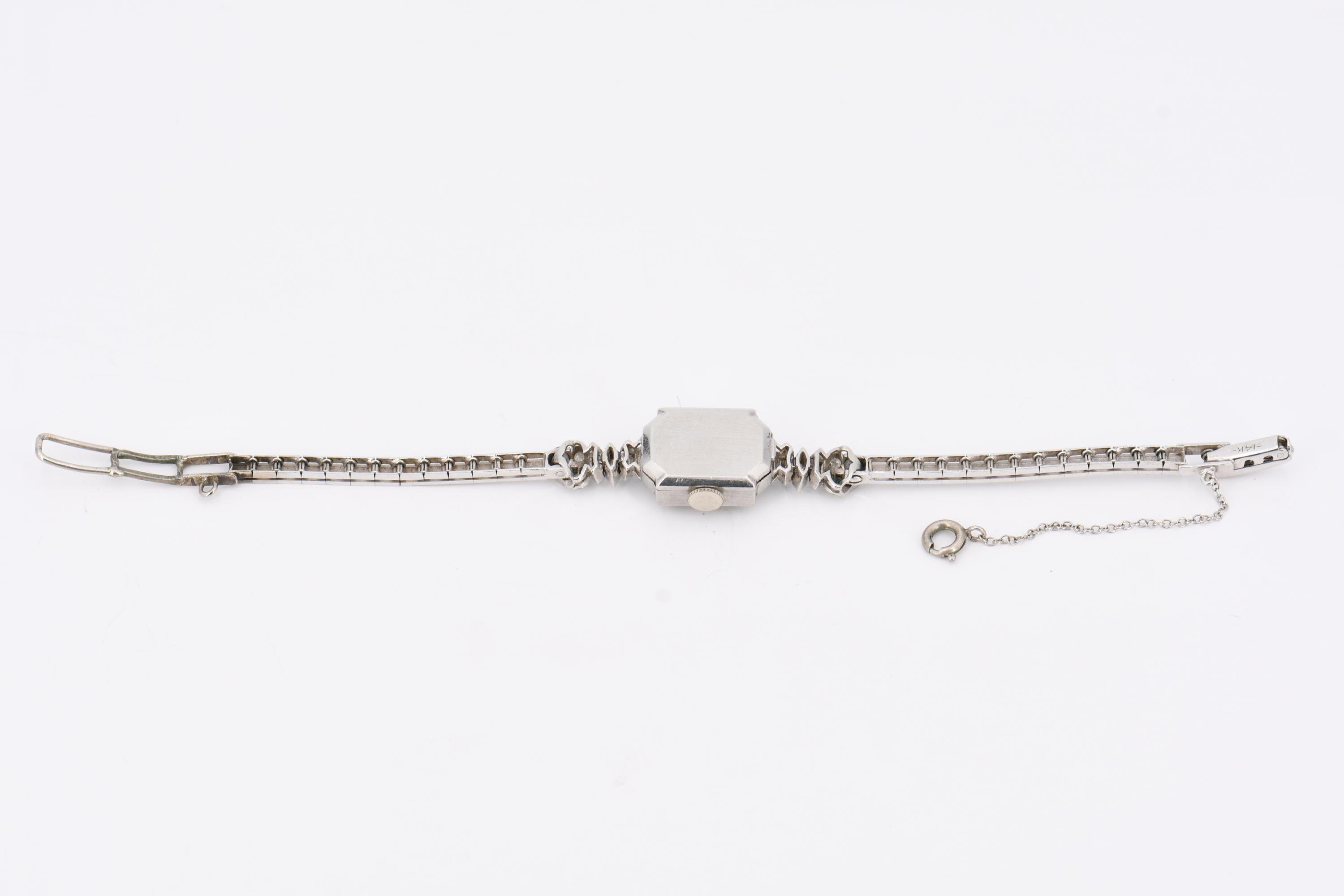 Gehäuse/Armband: 585/- Weißgold, Zffbl. weiß lackiert, Index gelb und aufgedruckt.