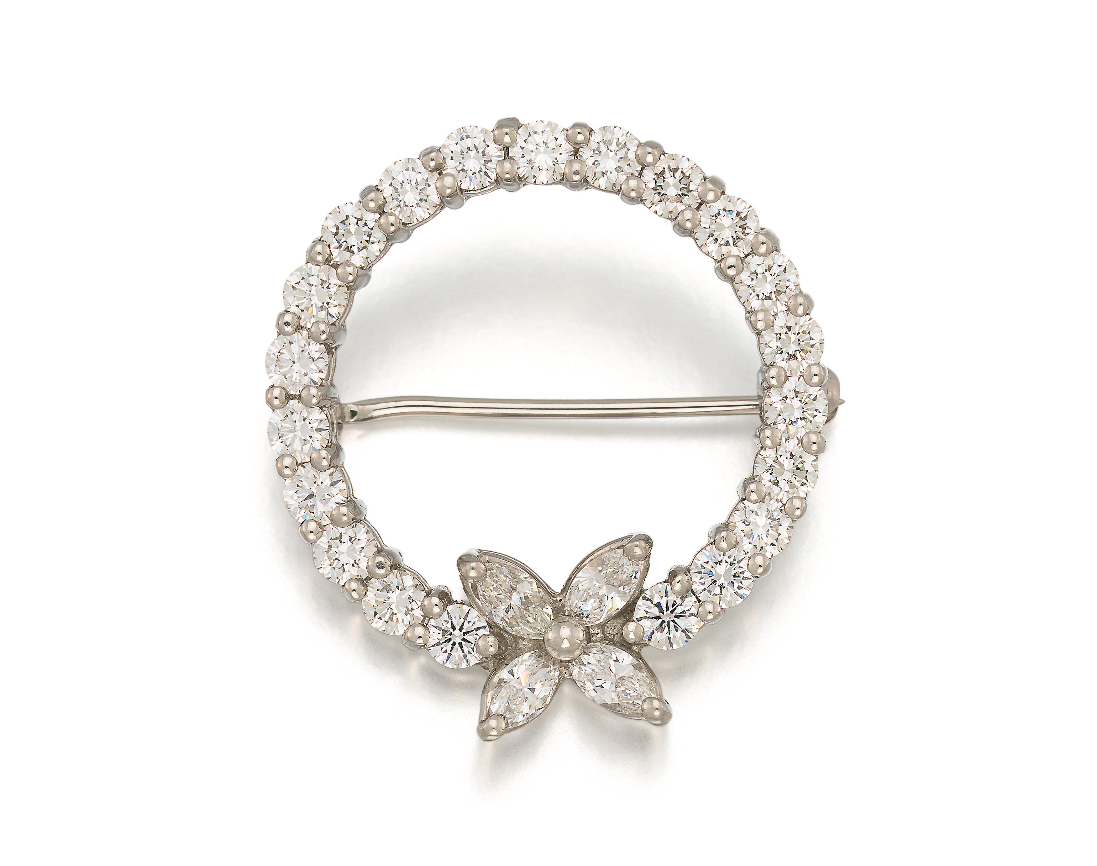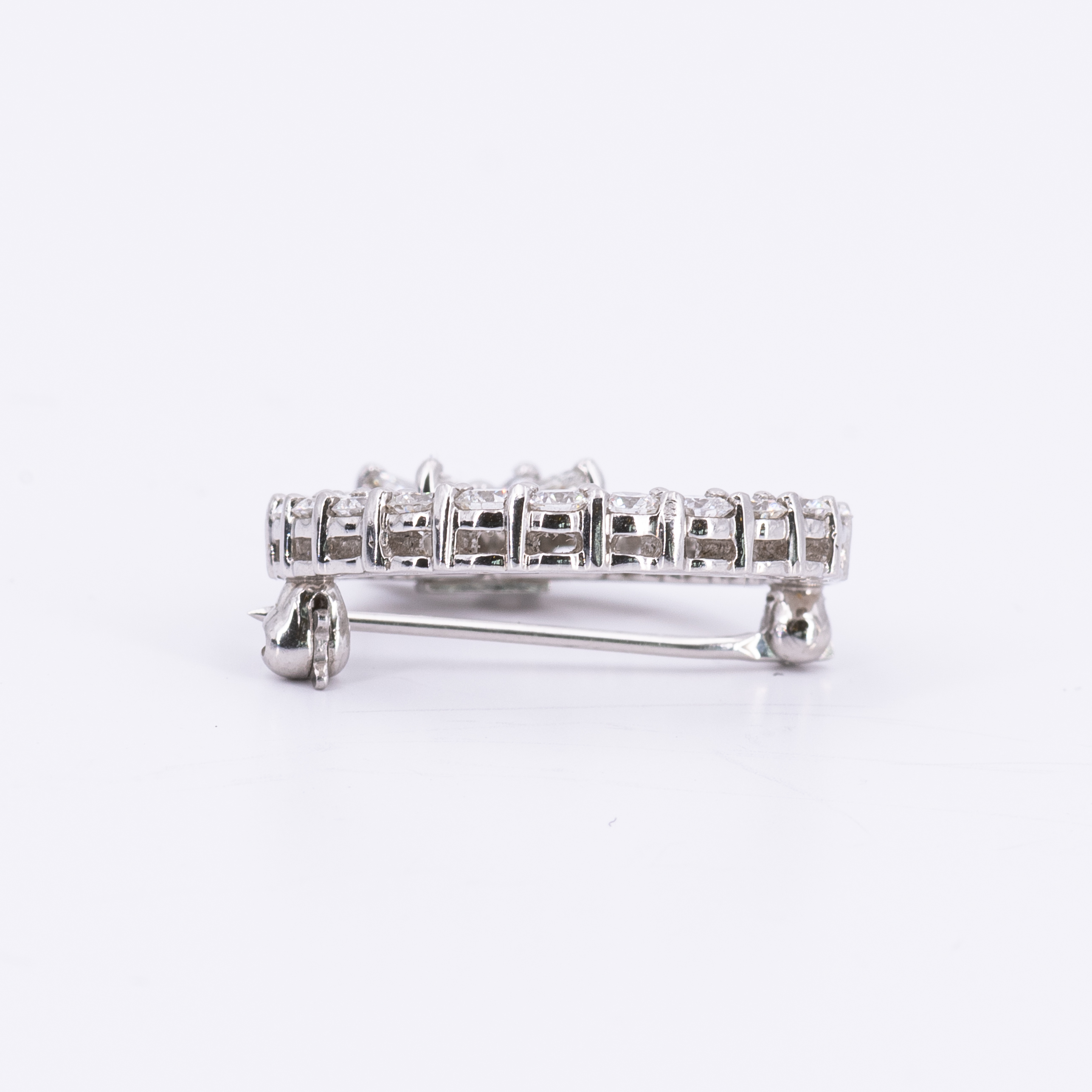 Diamanten: 21 Brillanten zus. ca. 1,2 ct., 4 Diamanten im Navette-Schliff zus. ca. 0,3 ct. G/VS.