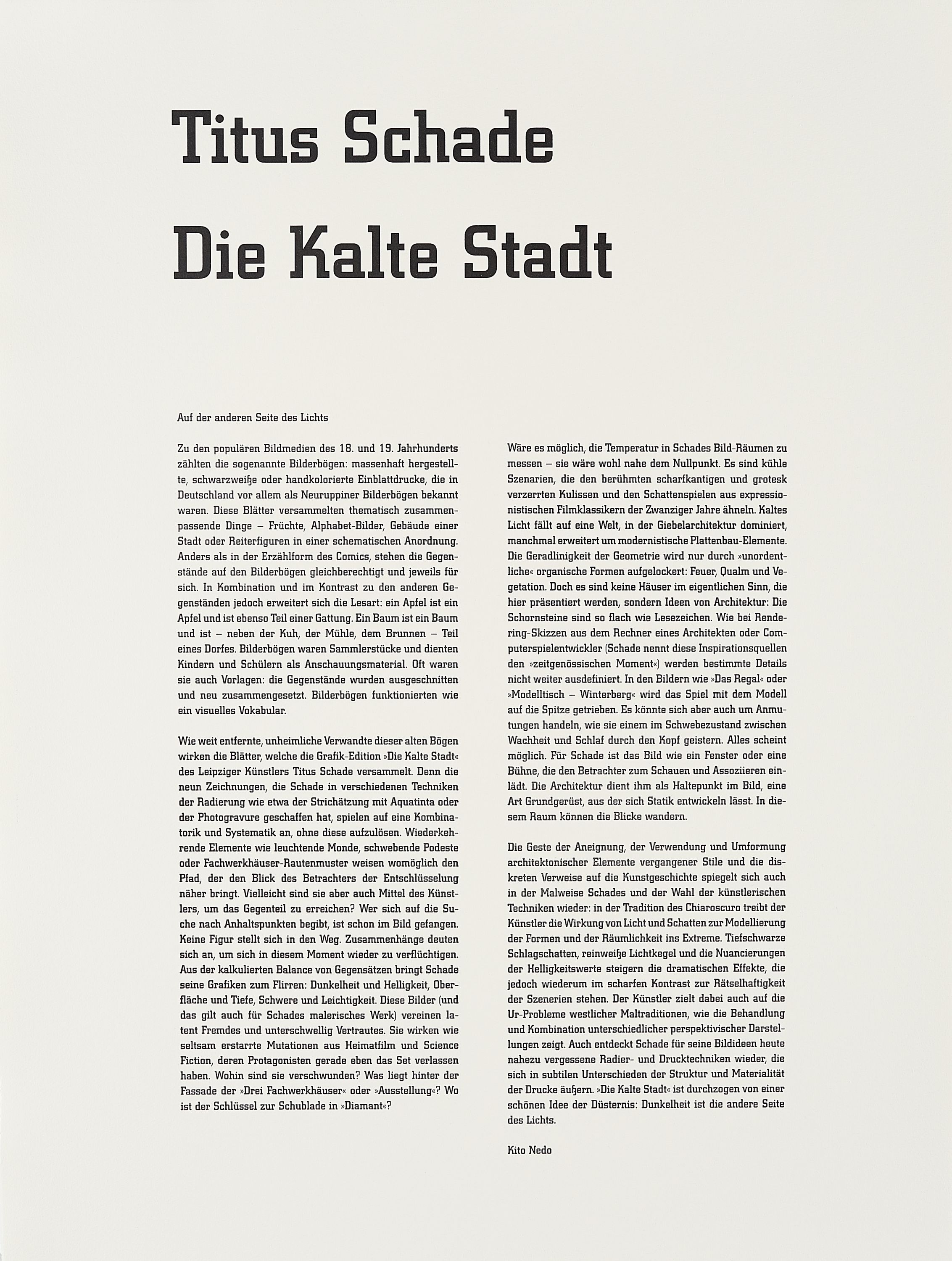 Titel: ": radierungen neun. Titus Schade Die Kalte Stadt".