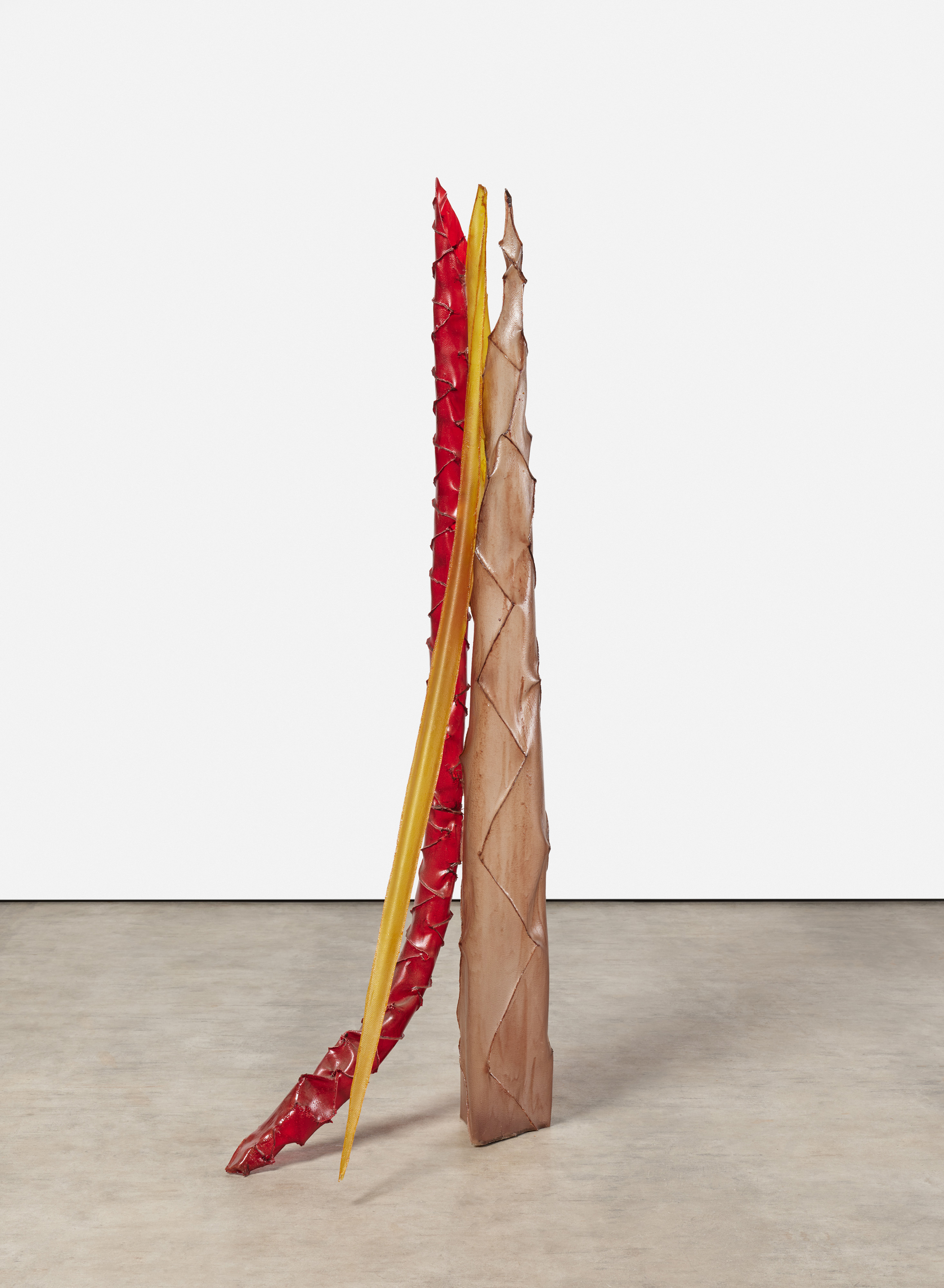 Staubablagerungen. Einzelne oberflächliche Kratzer. Einzelne Faseranhaftungen. Die Spitze des gelben Parts unten bestoßen. Ansonsten guter Zustand.