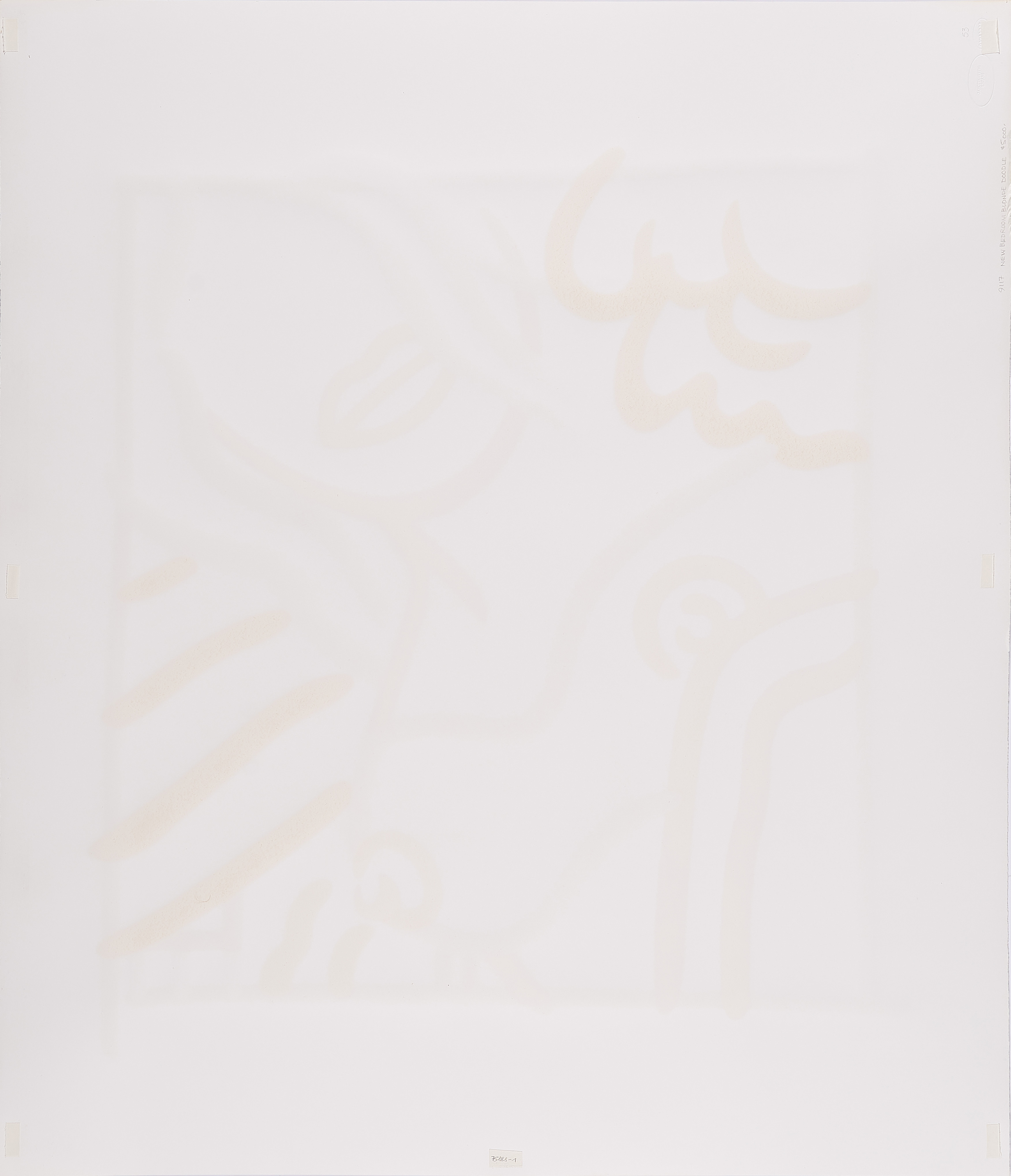 Bestoßung am unteren Rand links sowie leichte Bestoßung am unteren Rand rechts. Minimal gebräunt an den Kanten. Kleiner Fleck im oberen rechten Eckbereich. Verso Reste alter Montierung (schlagen recto minimal durch) sowie minimales Durchschlagen der Druckfarbe. Ansonsten sehr guter Zustand.