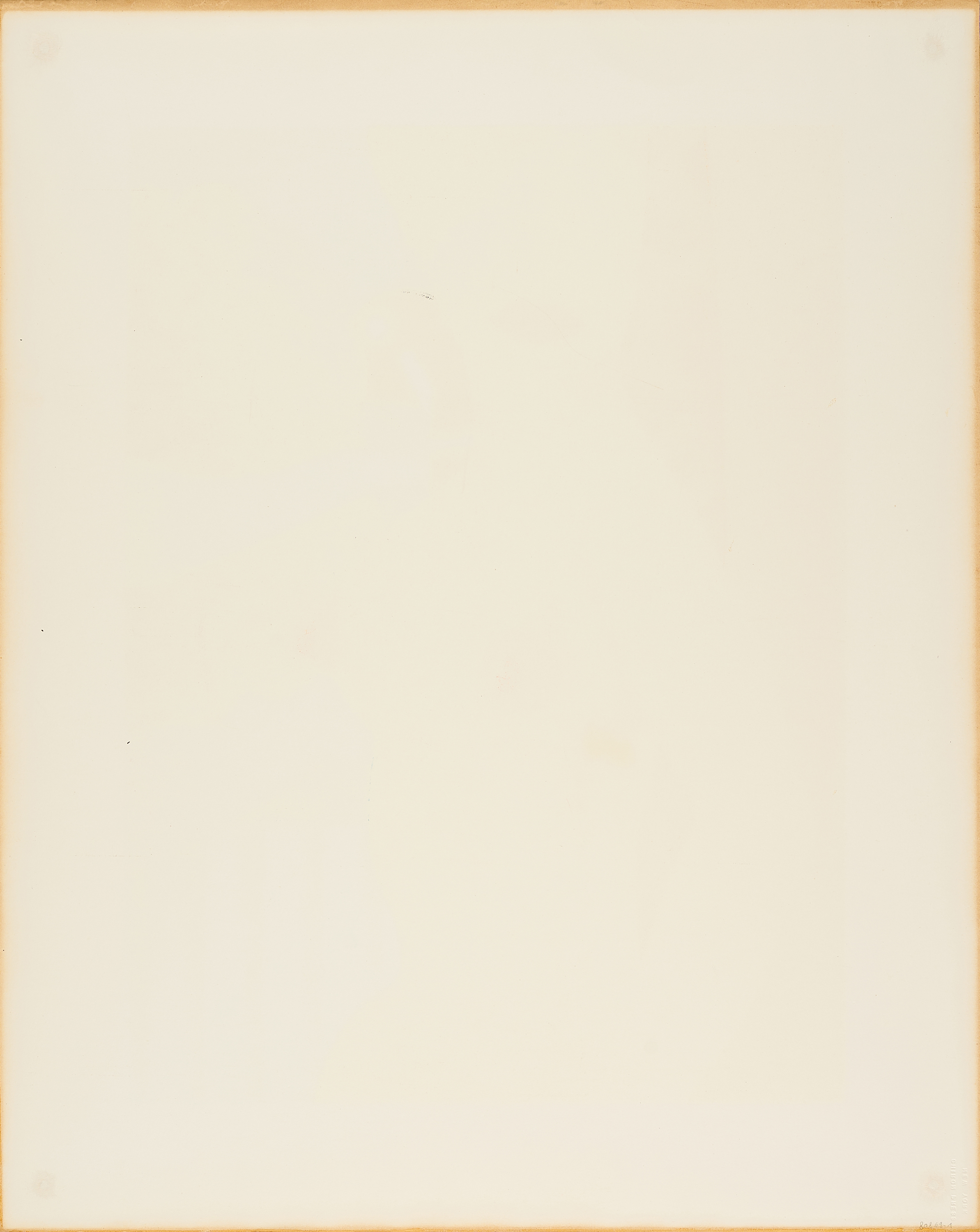 Insgesamt schwach, Blattkanten und äußerste Ränder deutlich gebräunt. Ecken mit runden verfärbten Stellen, wohl geschlossene Löcher. Unterer Rand mit winzigem, schwarzem Pünktchen. Rechter Rand gewellt. Verso zwei kleine schwarze Anhaftungen und partieller schwarzer Aufrieb. Ansonsten guter Zustand.