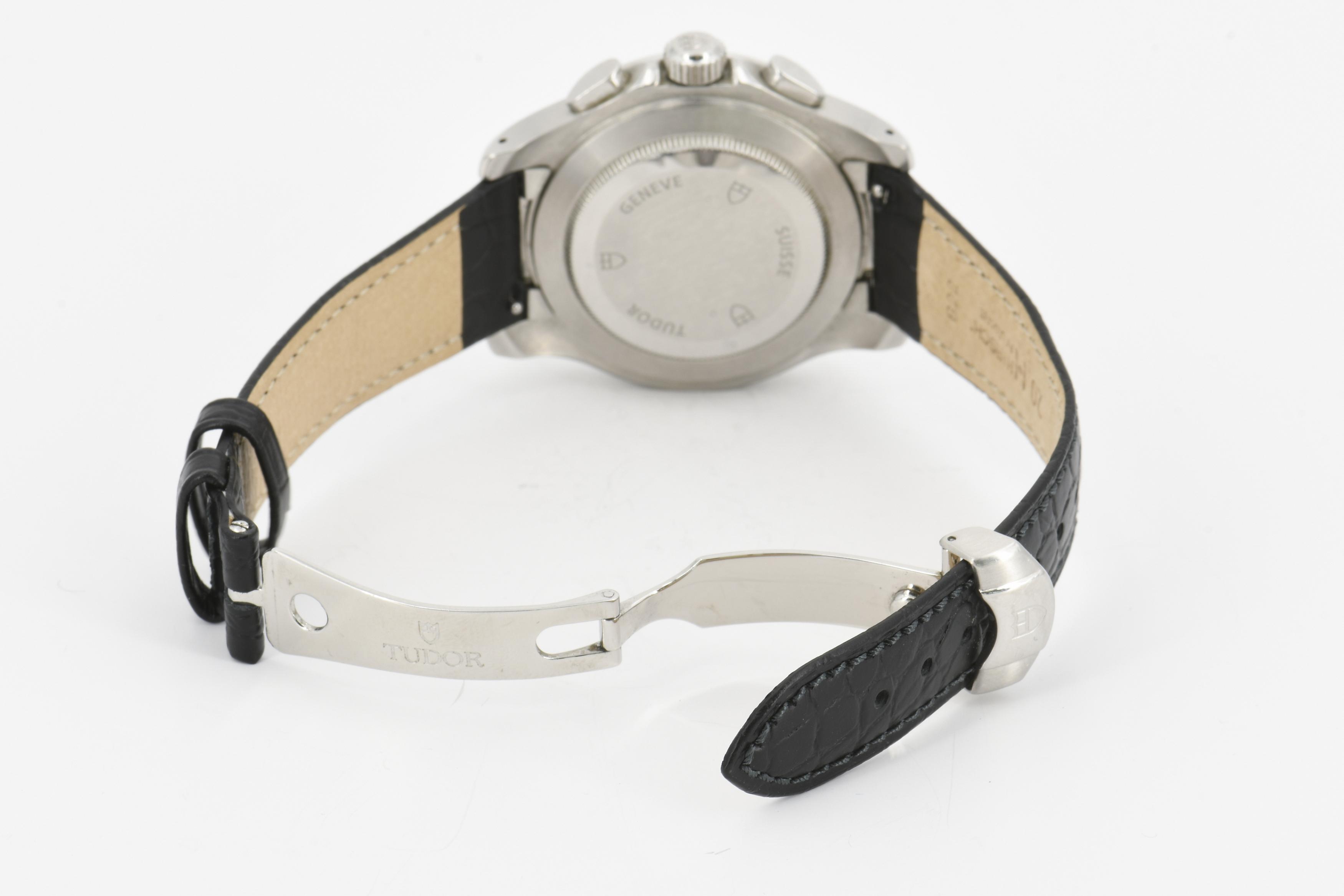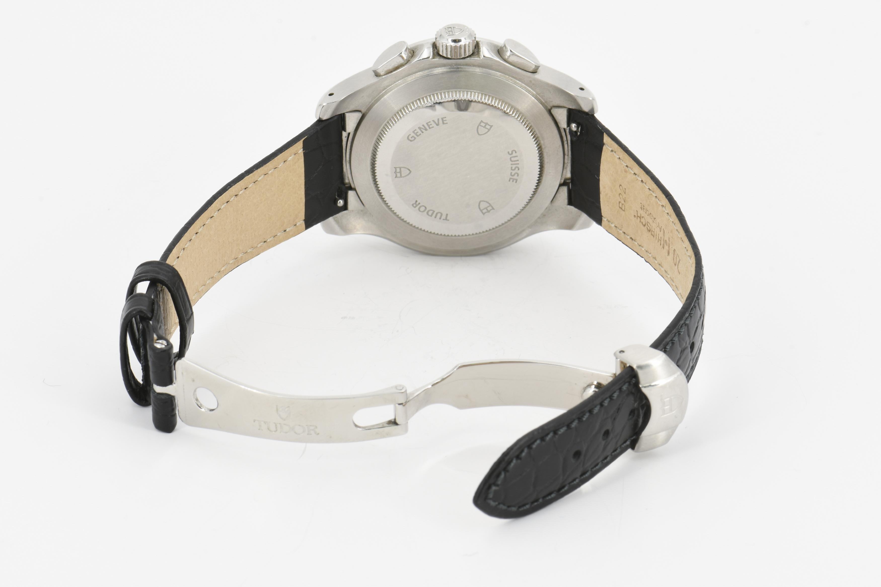 Gehäuse/Armband: Stahl, schwarzes Lederarmband mit Faltschließe, Zffbl. silbern, Indizes silbern, Zeiger silbern mit Leuchtmasse.