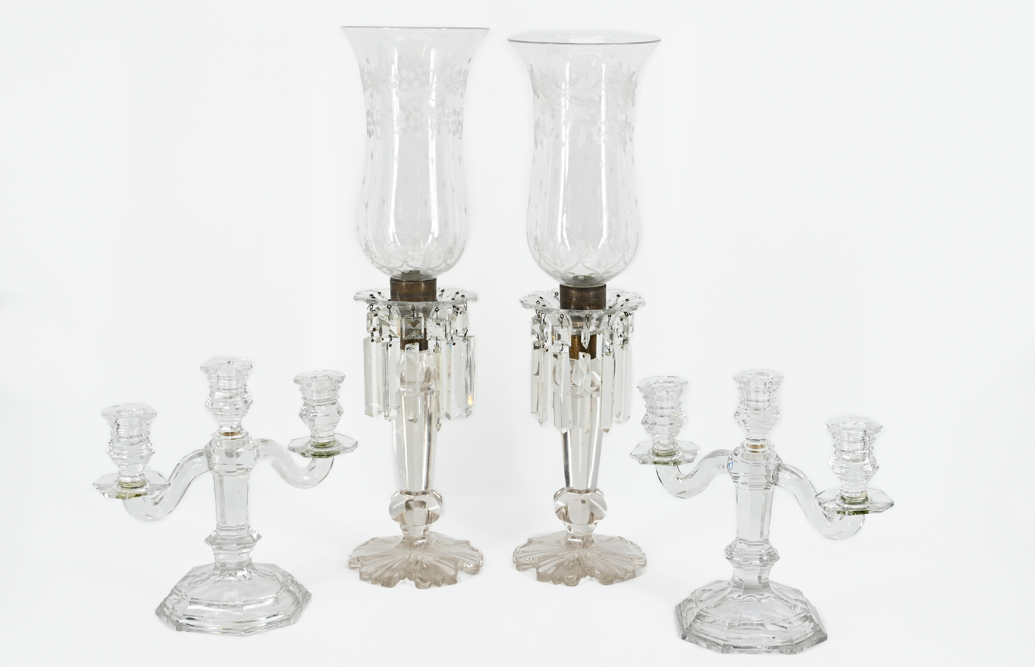 PAAR WINDLICHTER UND PAAR GIRANDOLEN.