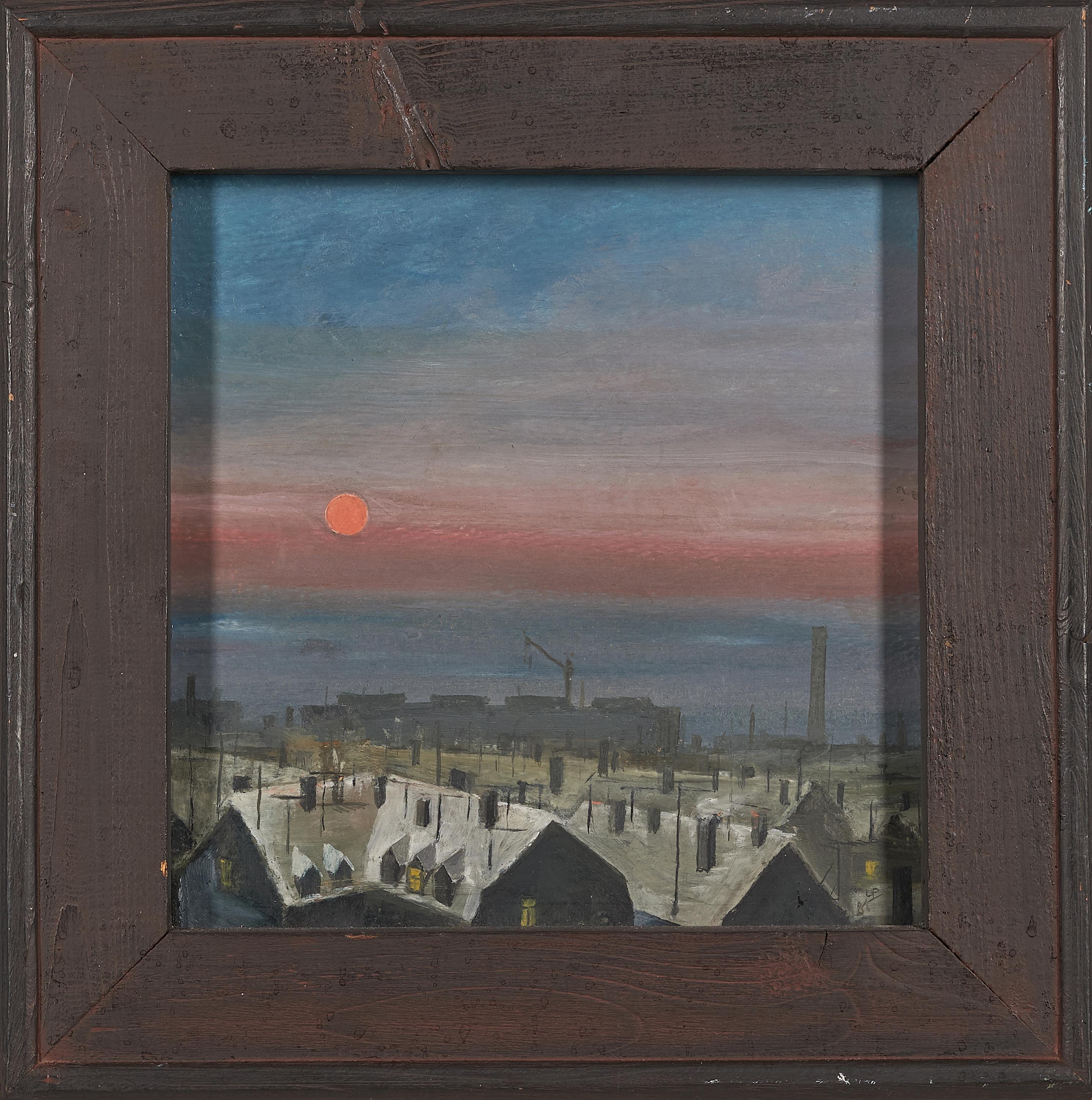 Ohne Titel (Stadtlandschaft). Öl auf Hartfaserplatte. 24 x 24cm. Signiert und datiert unten rechts: UP 81 sowie verso signiert: U. Puder. Rahmen.