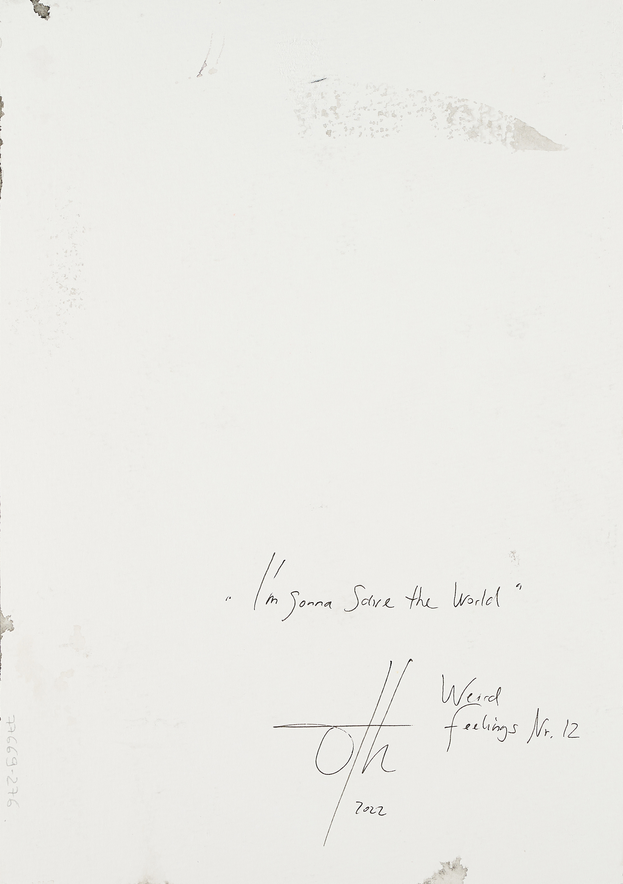 Bezeichnung: Betitelt, monogrammiert und datiert verso: "I'm gonna Save the World" Weird feelings Nr. 12 UTh (Künstlersignet) 2022.