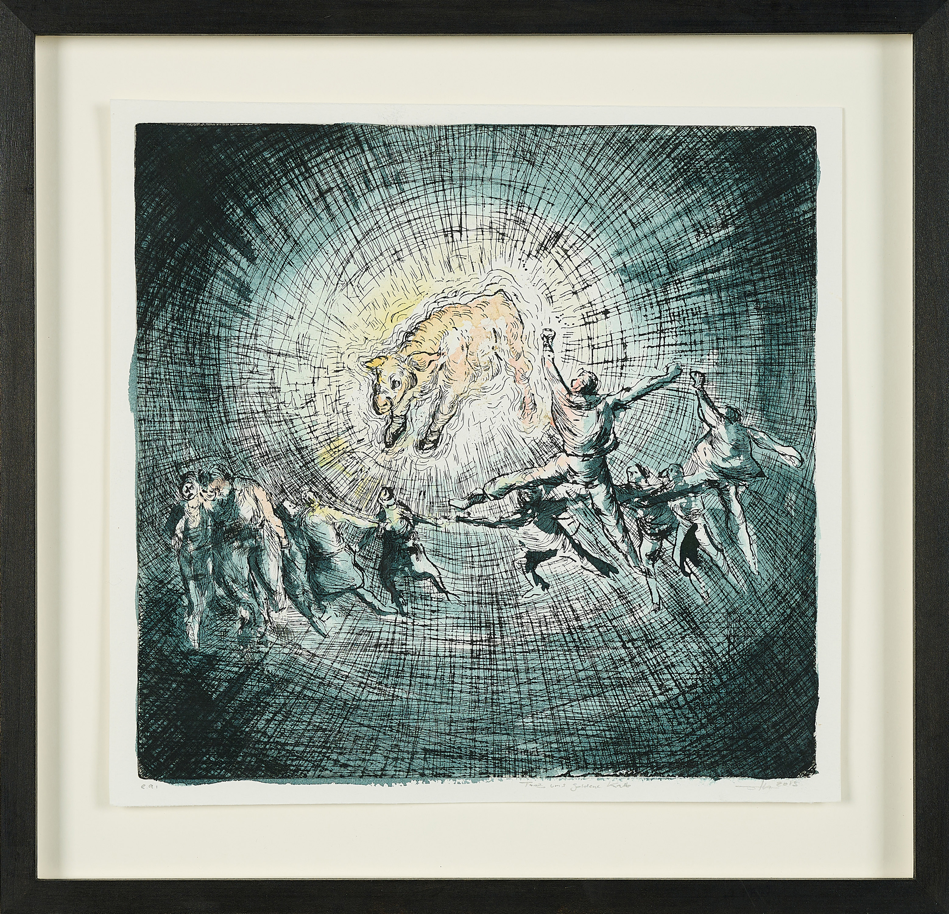 Technik: Radierung, koloriert mit Tusche und Aquarell auf Bütten.