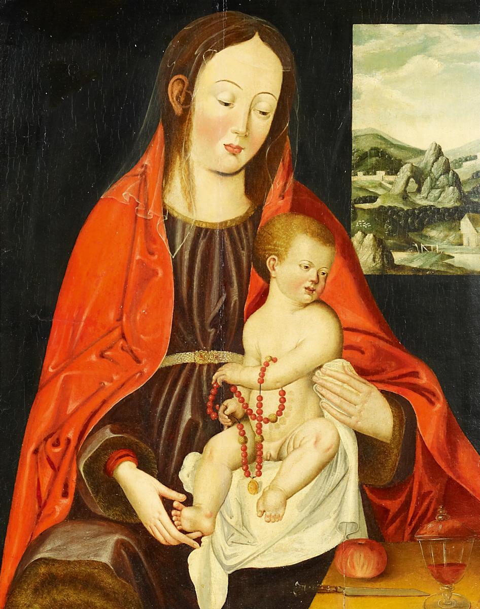 Maria mit dem Christusknaben. Öl auf Holz. 73 x 57cm. Rahmen.