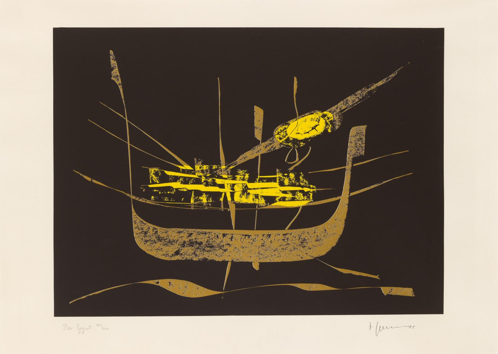 Peer Gynt. Siebdruck auf Velin. 45 x 61cm (61 x 82cm). Signiert (unleserlich), nummeriert und betitelt. Ex. 127/200. Rahmen.