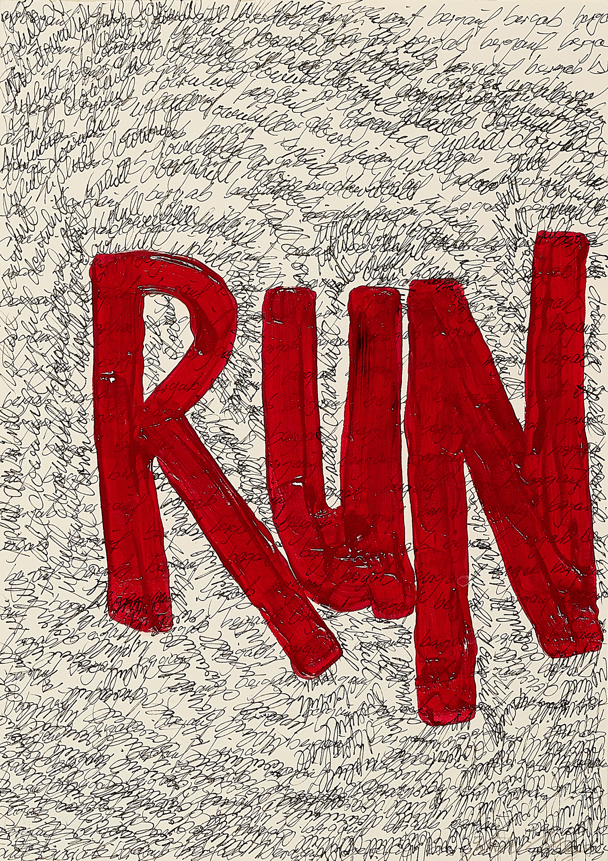 Bezeichnung: Betitelt mittig: RUN. Sowie signiert unten rechts: Günther Meyer.