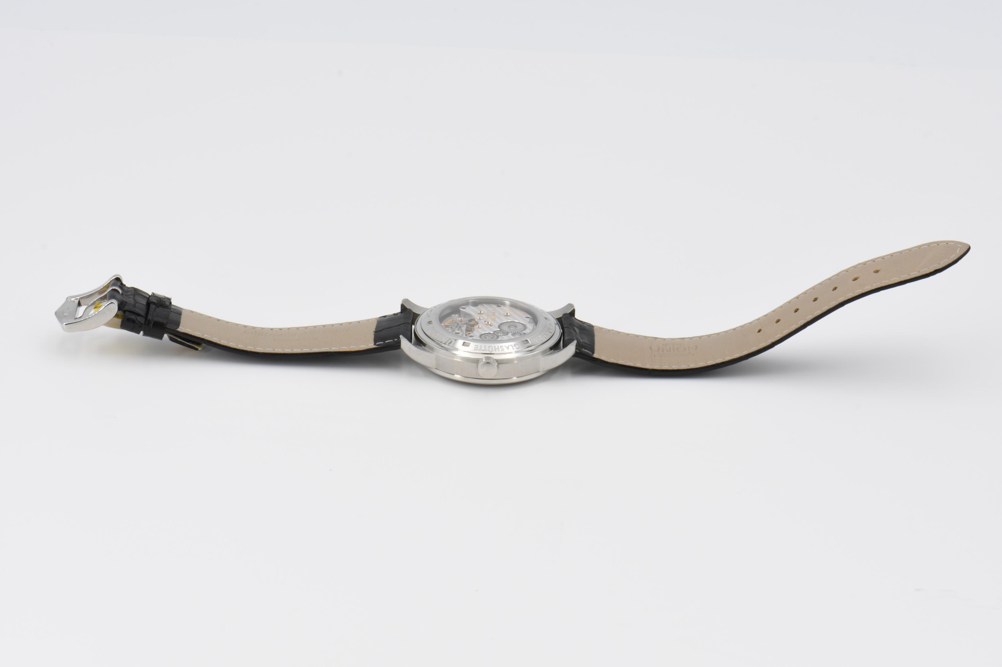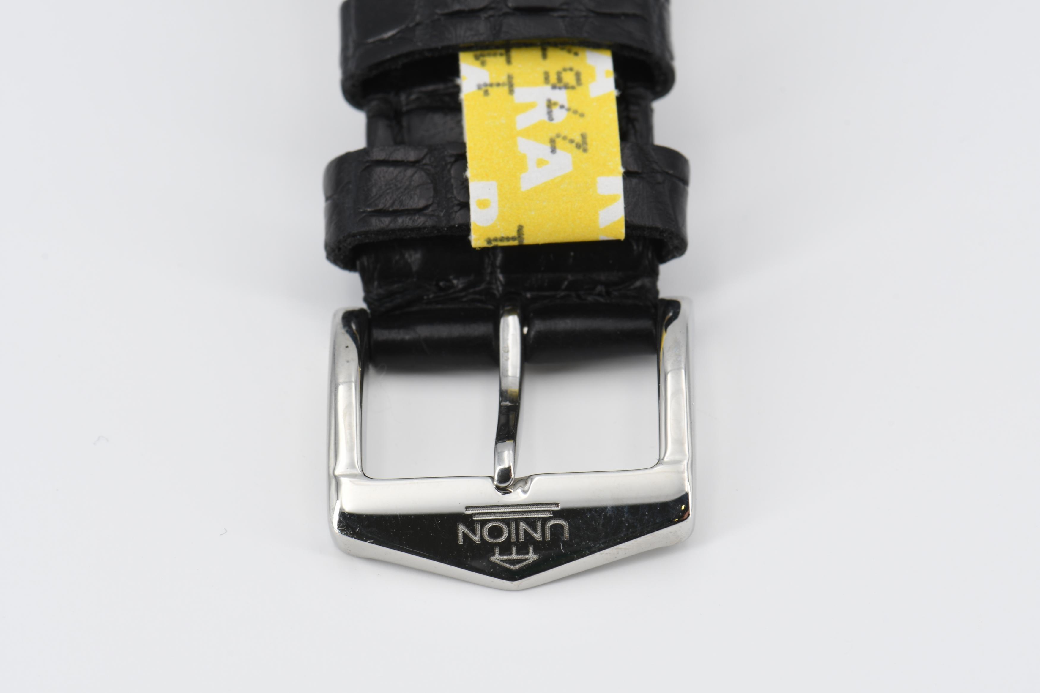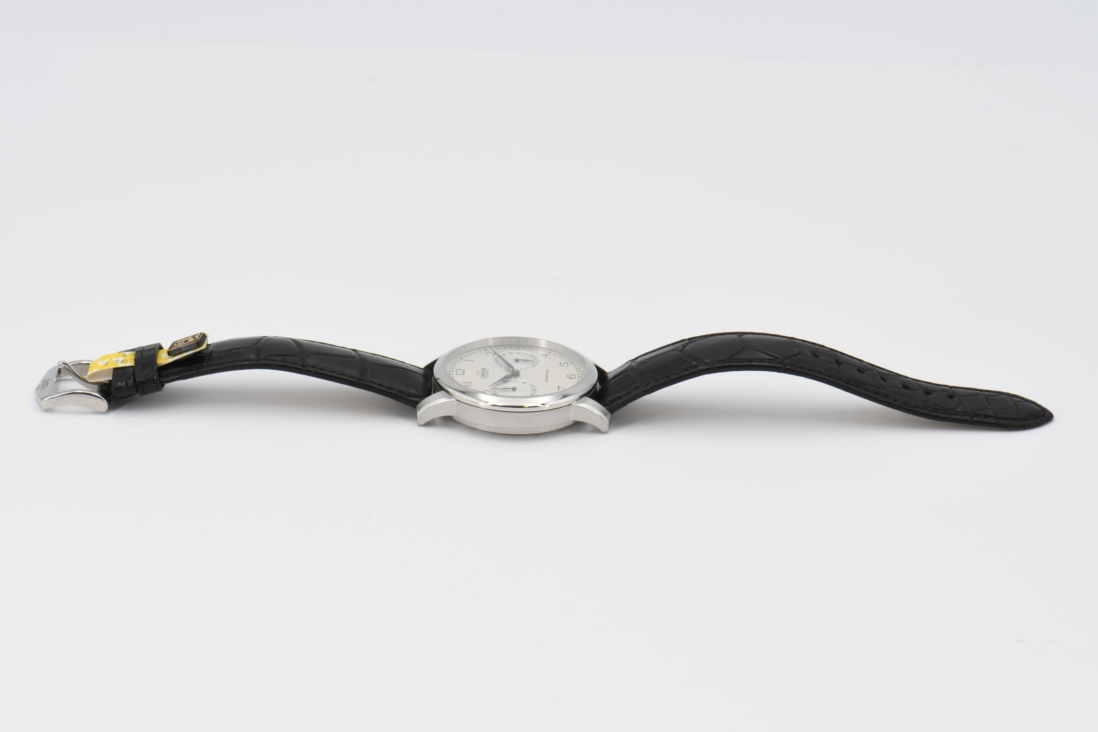 Gehäuse/Armband: Stahl, Lederarmband mit orig. Dornschließe und IRV-Fahne, Zffbl. weiß/silbern lackiert, Indizes schwarz lackiert, Zeiger gebläut.