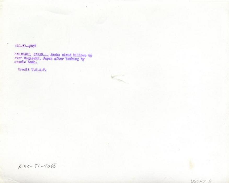 Nagasaki, Japan 1945. Vintage. Gelatinesilberabzug. Passepartout. 19,1 x 23,7cm (20,3 x 25,8cm). In der rechten unteren Bildecke Archivnummer sowie in der linken oberen Blattecke mit
