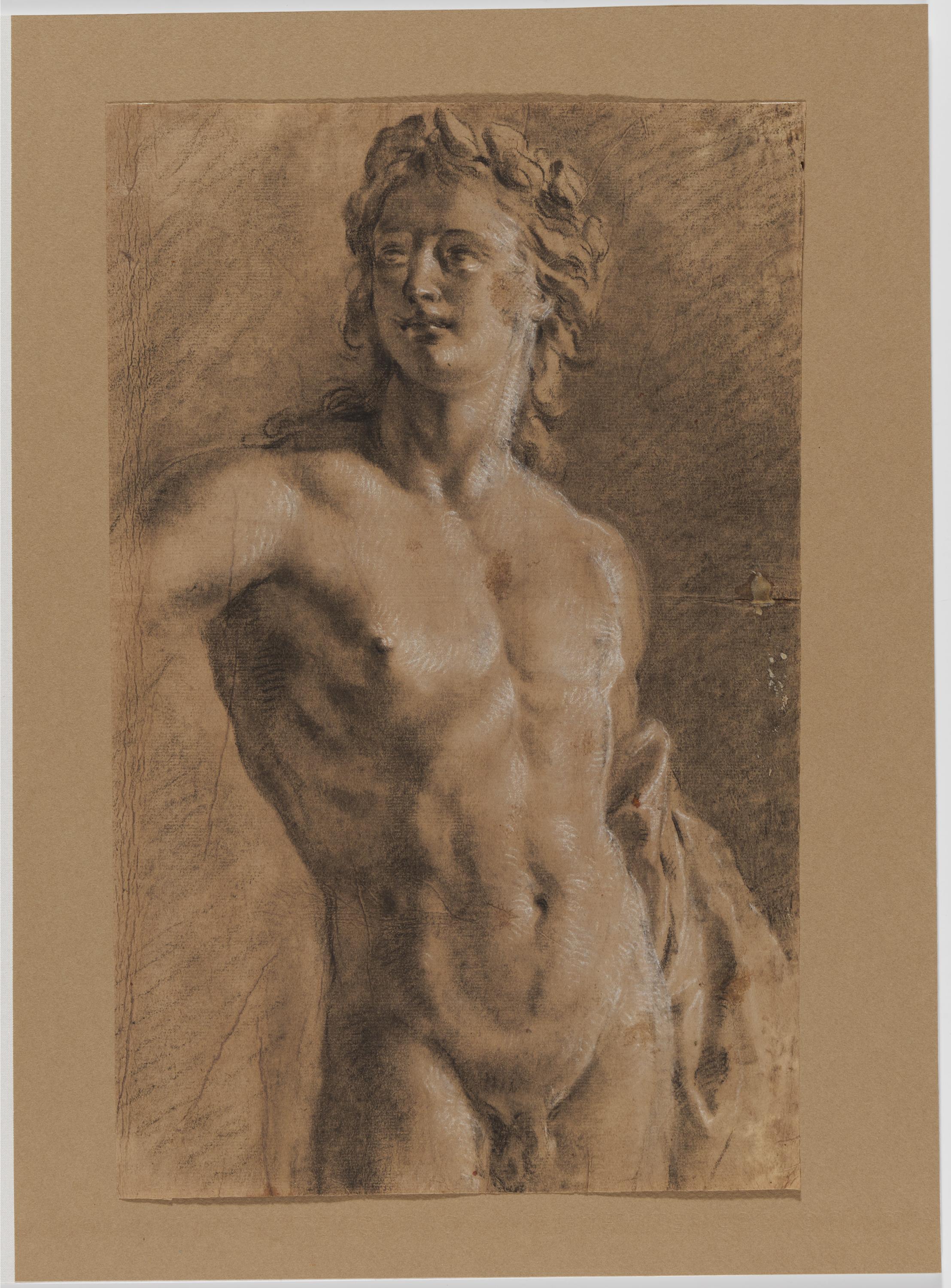 Technik: Schwarze Kreide, weiß gehöht auf Papier.