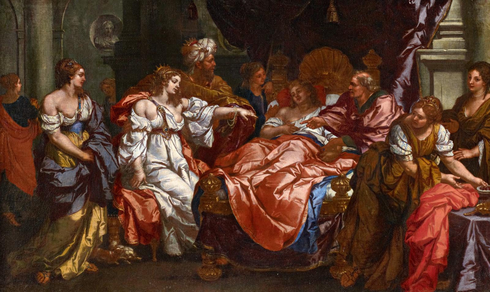 Antiochos und Stratonike. Öl auf Leinwand. Doubliert. 76 x 126cm. Monogrammiert am Bettpfosten rechts: ALGT (lig.). Rahmen.