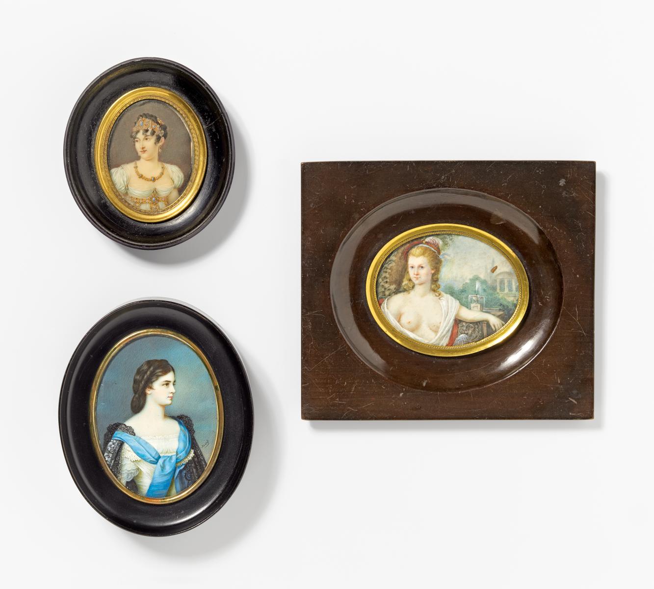 3 MINIATUREN MIT DAMENPORTRÄTS.