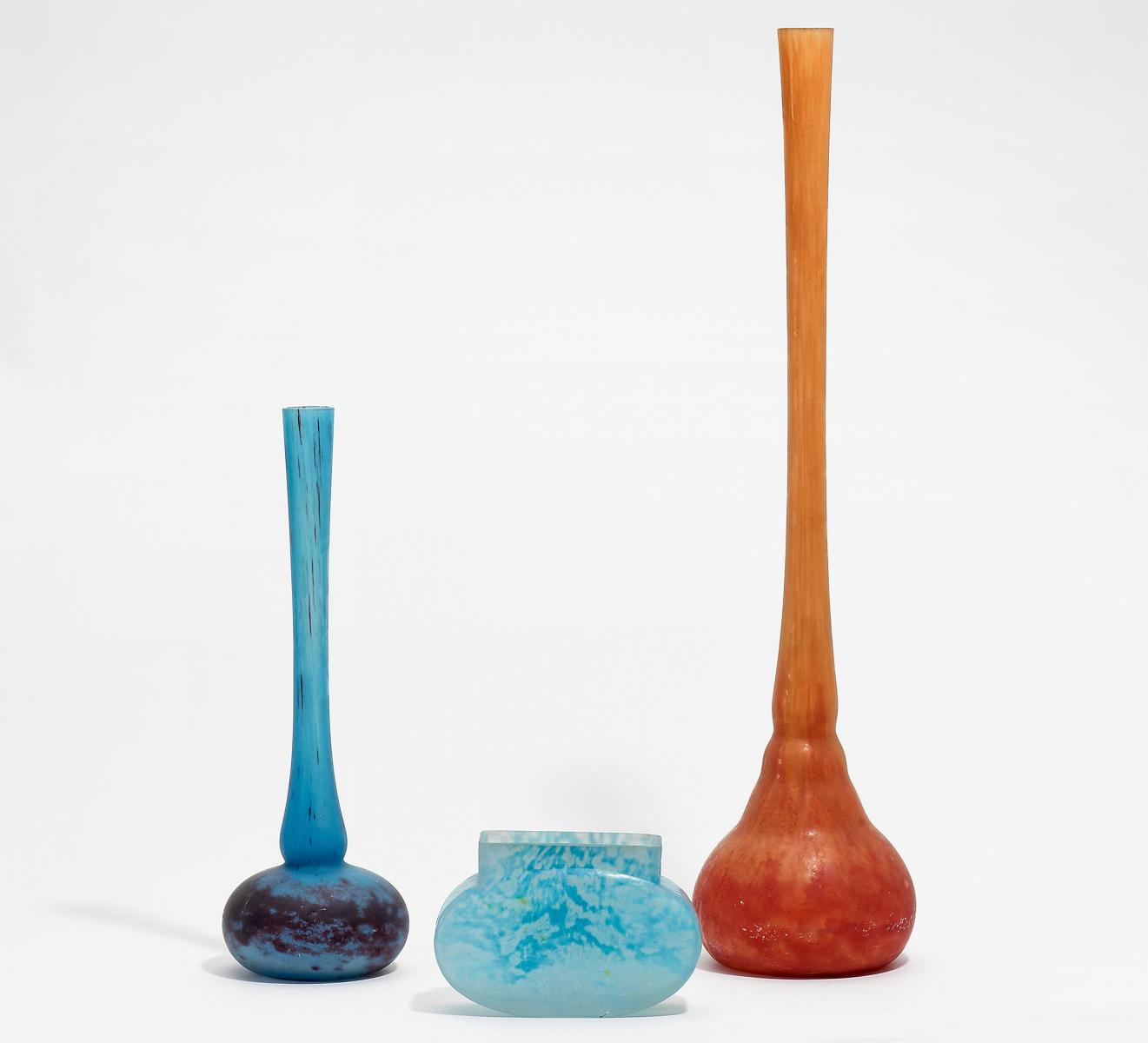 Material: Farbloses Glas, mit verschiedenfarbigen Pulvereinschmelzungen.