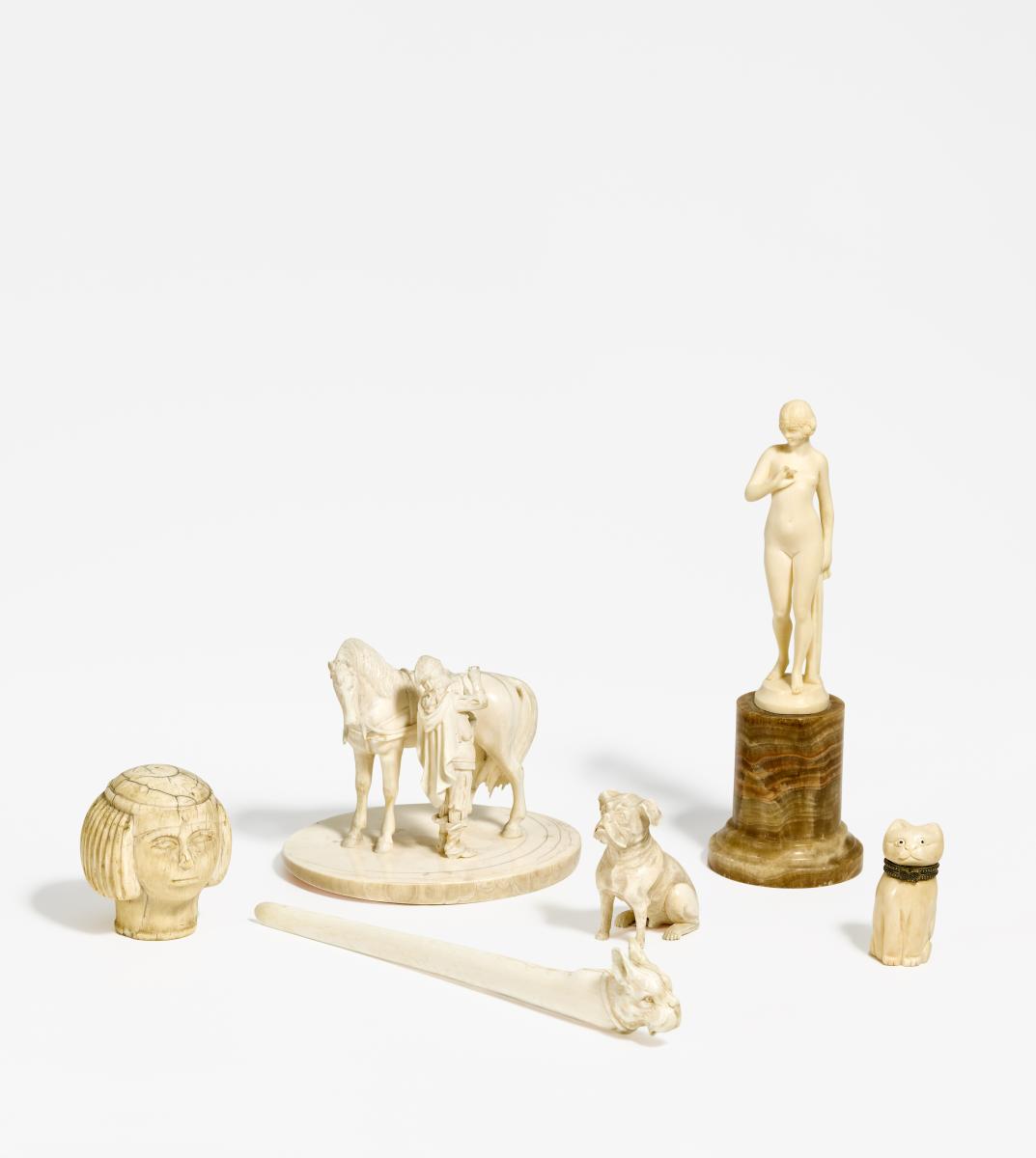 Technik: Elfenbein, tlw. mit Montierung oder Sockel.