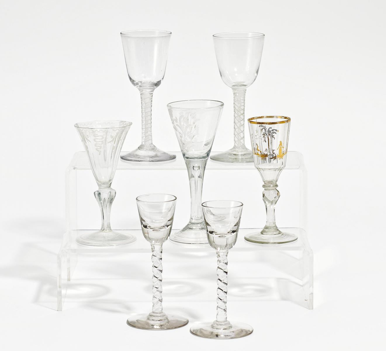 KONVOLUT SIEBEN STENGELGLÄSER.