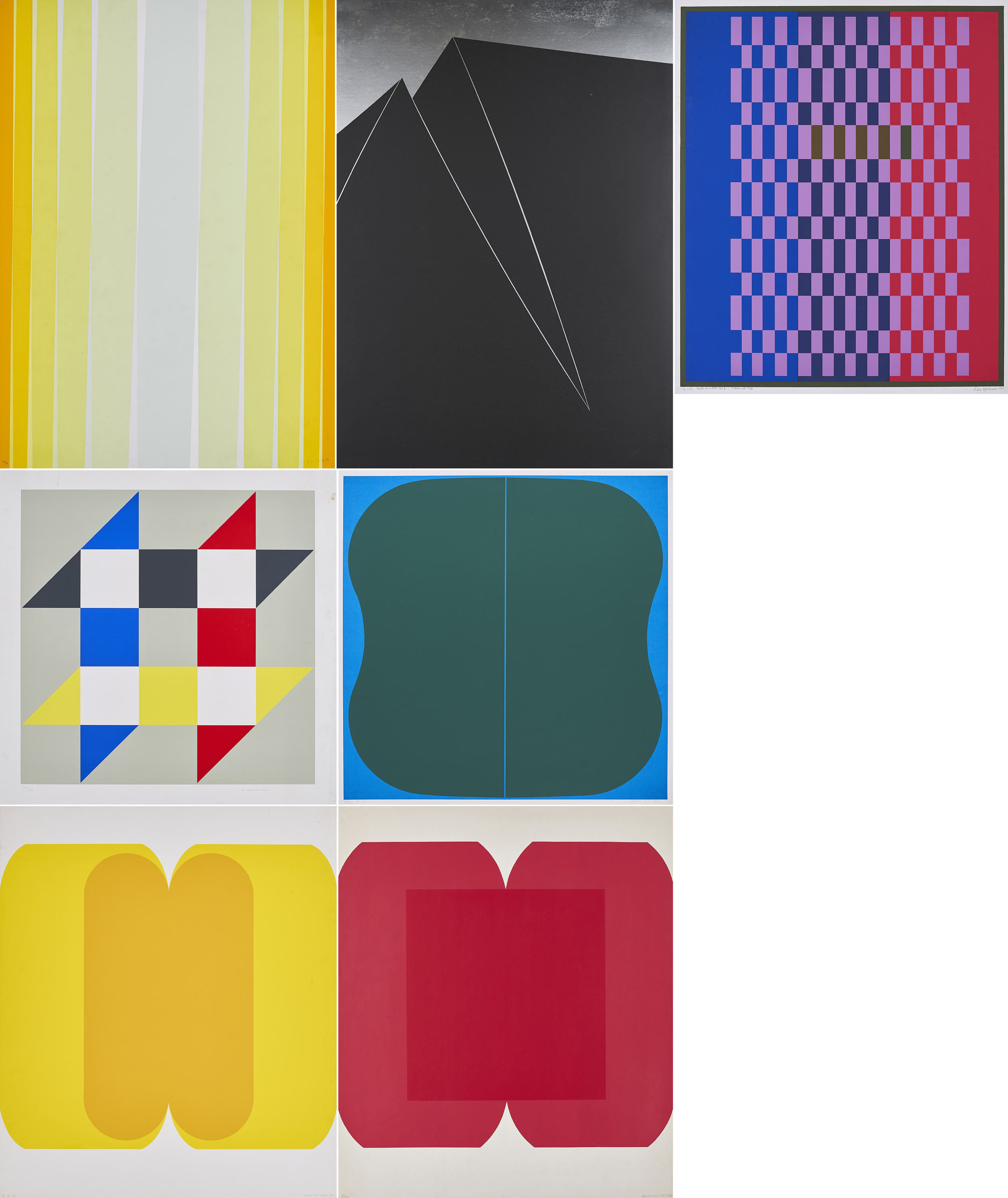 Technik: Jeweils Farbserigrafie auf Karton bzw. leichtem Karton.