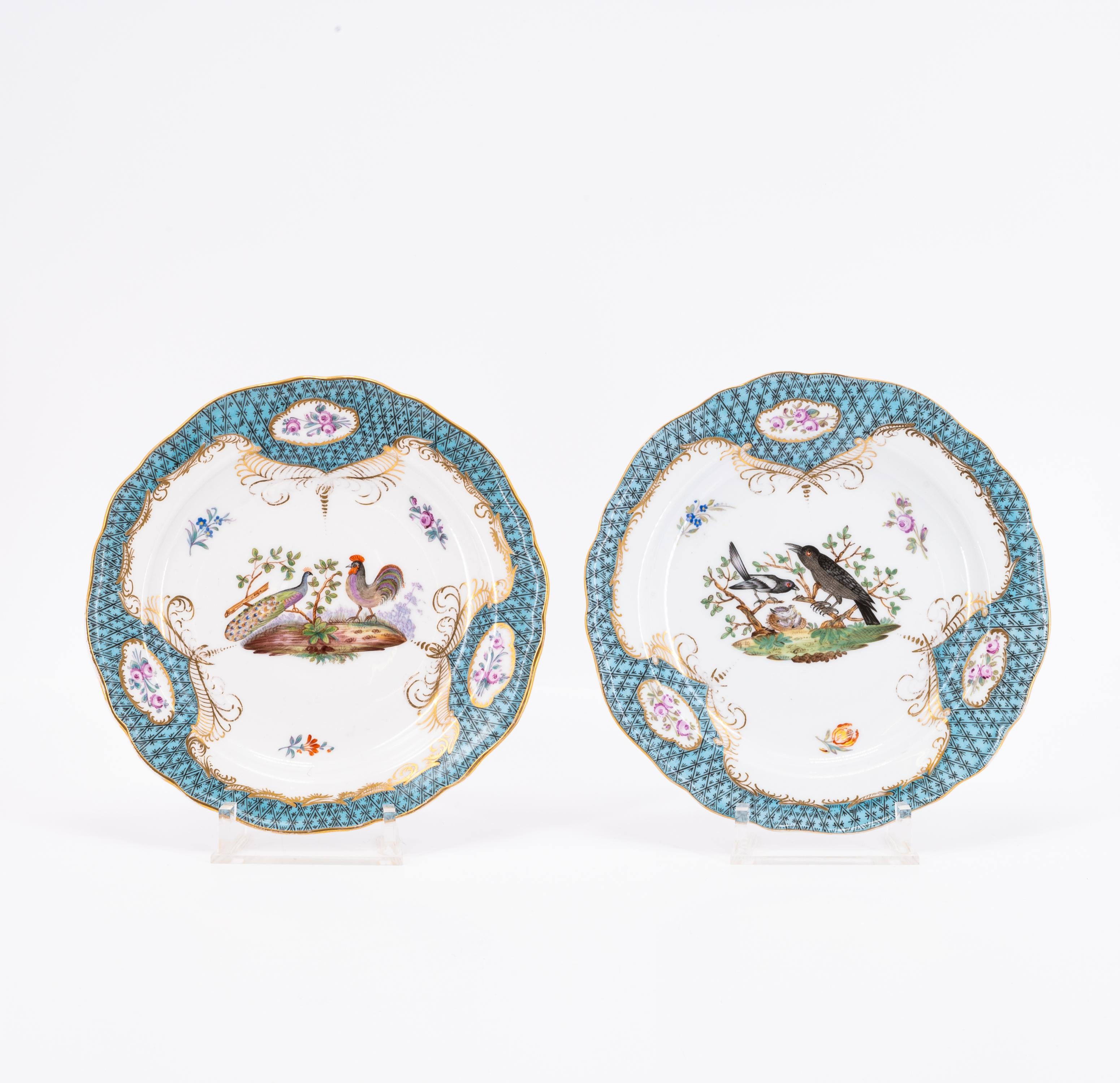 2 blau dekorierte Teller mit Vogeldekor (Ø 20cm).