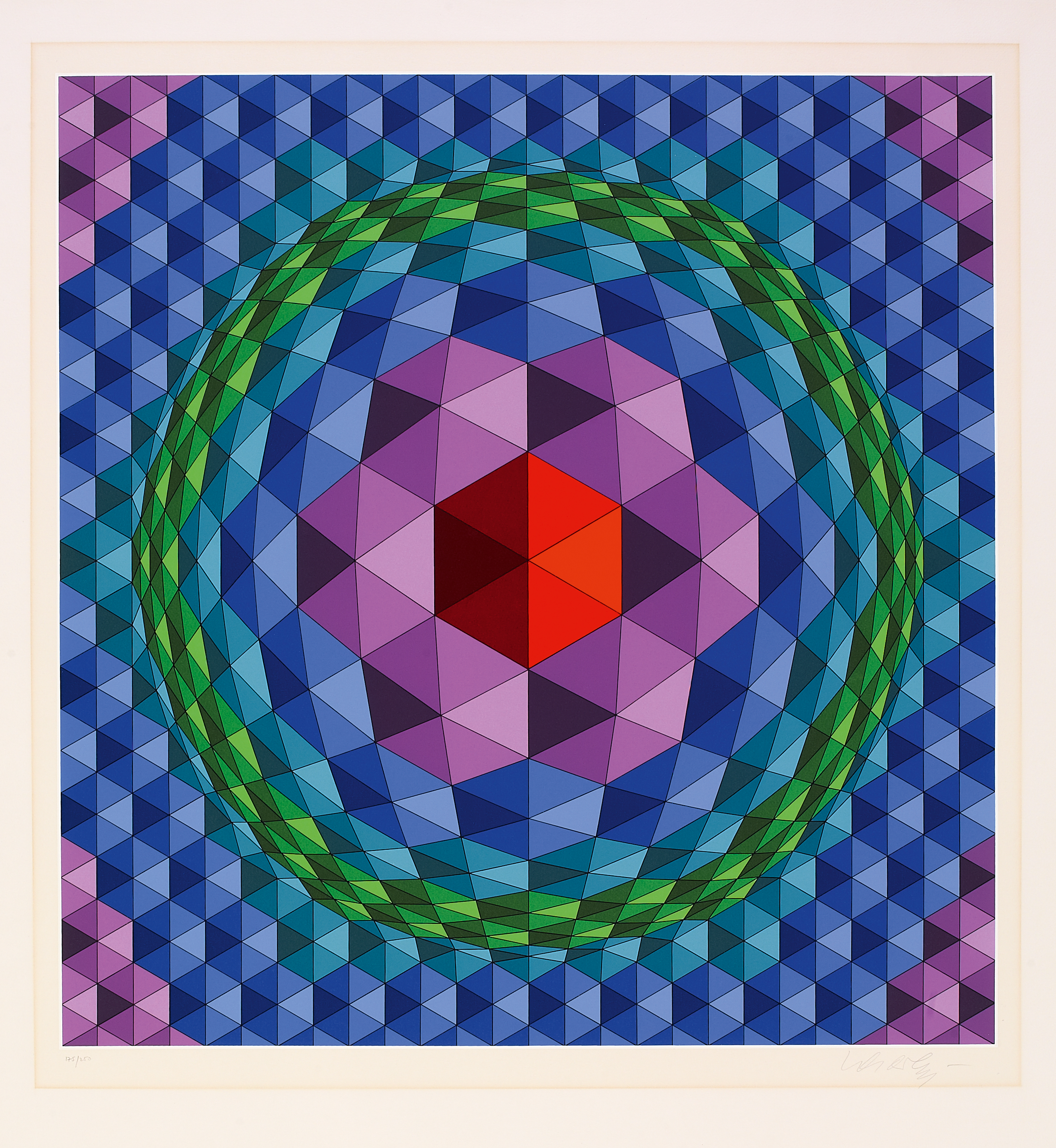 1906 PÉCS/UNGARN - 1997 PARISOhne Titel. Farbserigraphie. Büttenkarton auf 69. 66,5cm (82,5cm). 175/250. Verso minimale Verschmutzungen. Reste alter Montierung an der oberen Kante.