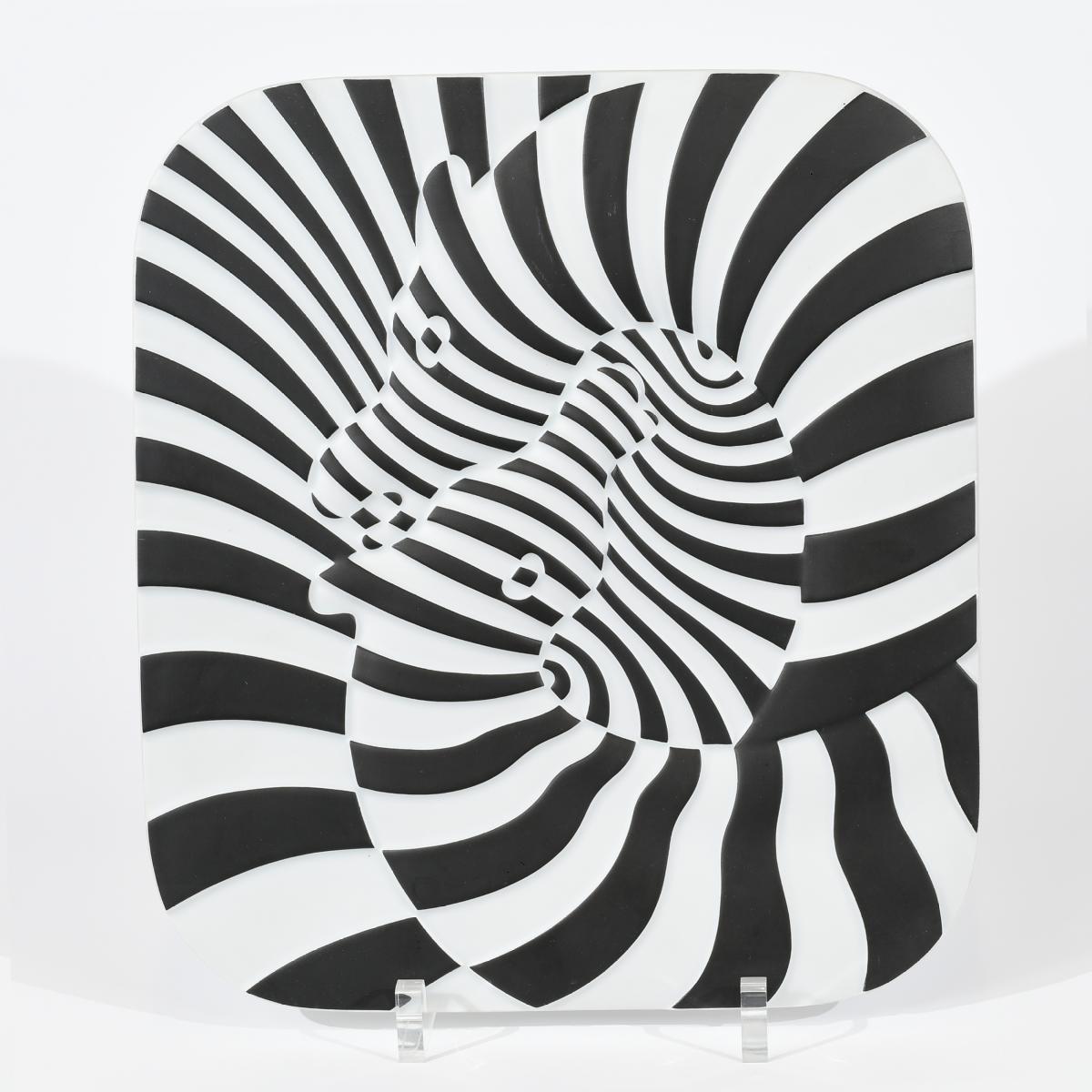 Ohne Titel. 1977. Porzellan-Objekt 34,5 x 31,5 x 3cm. Verso nummeriert und bezeichnet: Rosenthal Jahresteller in Porzellan Edition 1977 Entwurf: Victor Vasarely 2645/3000 Vasarely. Rosenthal, limited edition (Hrsg.). Ex. 2645/3000.