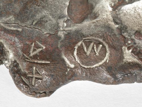 Bezeichnung: Nummeriert und monogrammiert oben mittig auf der Plinthe: V/X WO.