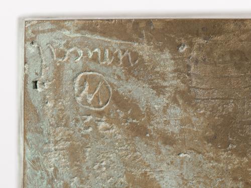 Technik: Bronze und Eisenguss, braun-grün patiniert.