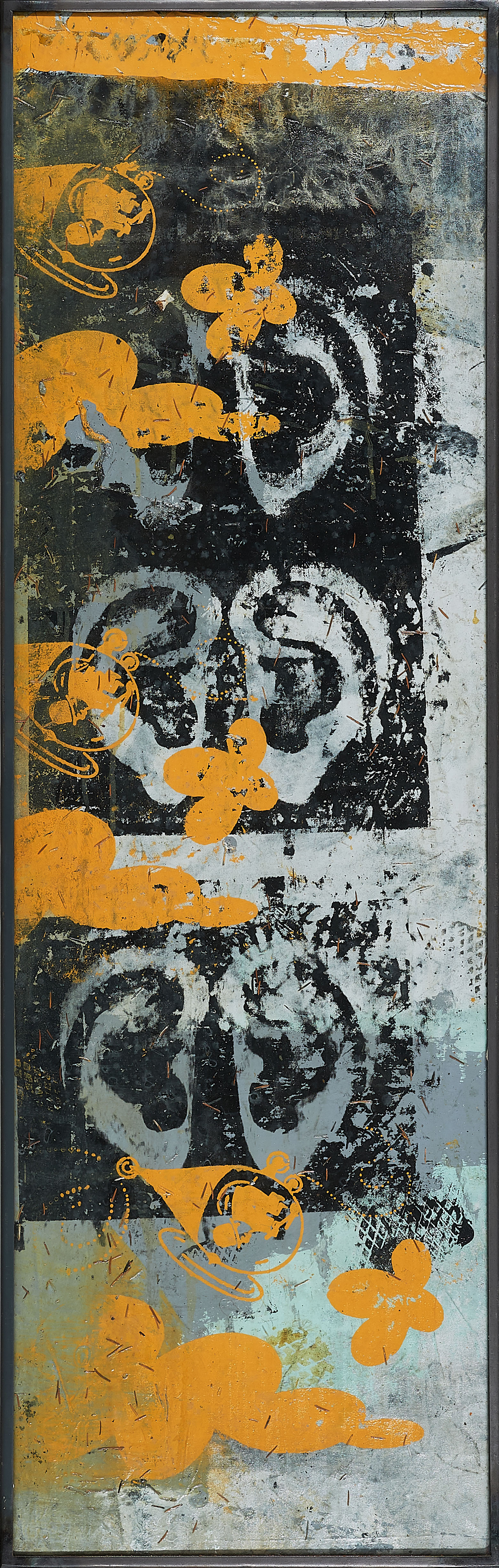 Technik: Mischtechnik und Tannennadeln auf Papier.