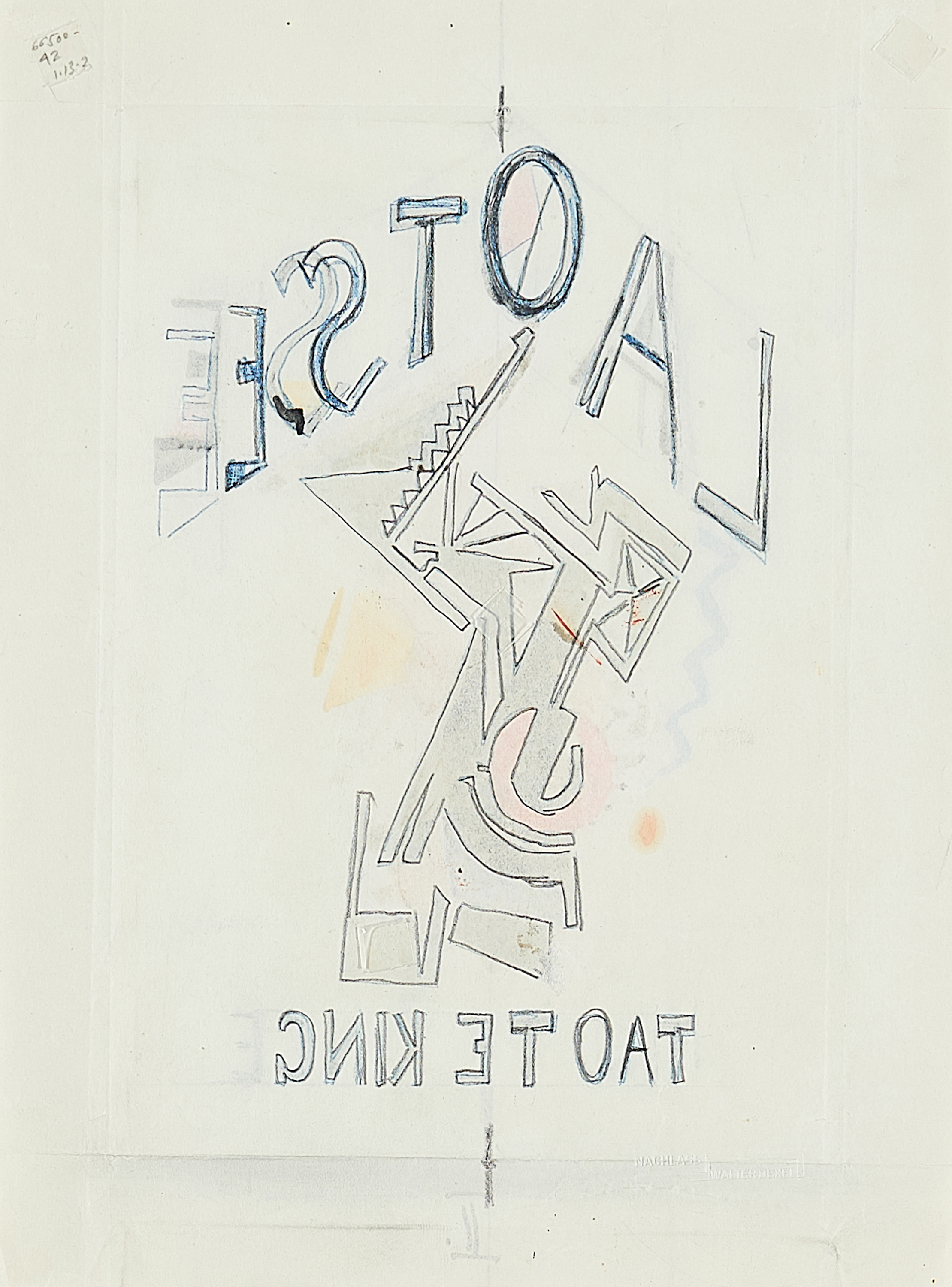 Technik: Bleistift, Tusche und Tempera (collagiert) auf Papier.