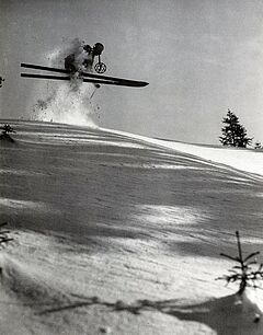 "Quersprung". 1925. Gelatinesilberabzug. Rückseitig mit Bleistift betitelt, datiert, Atelier- und Copyrightstempel des Photographen. Passepartout. 18.